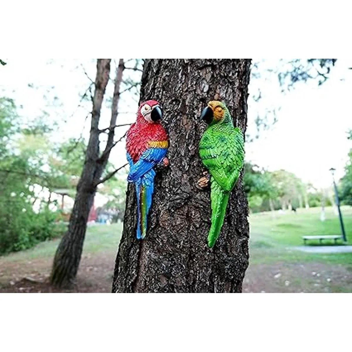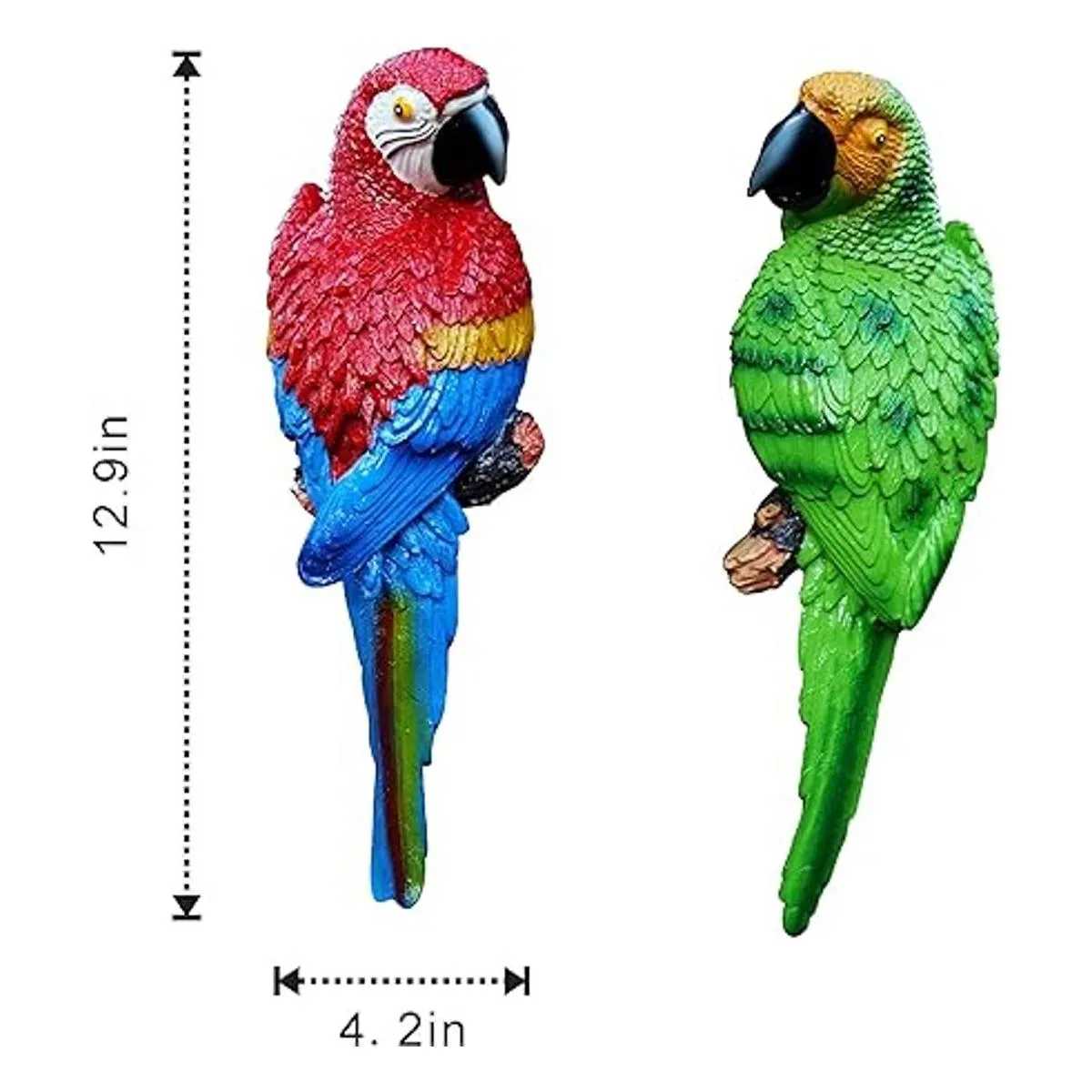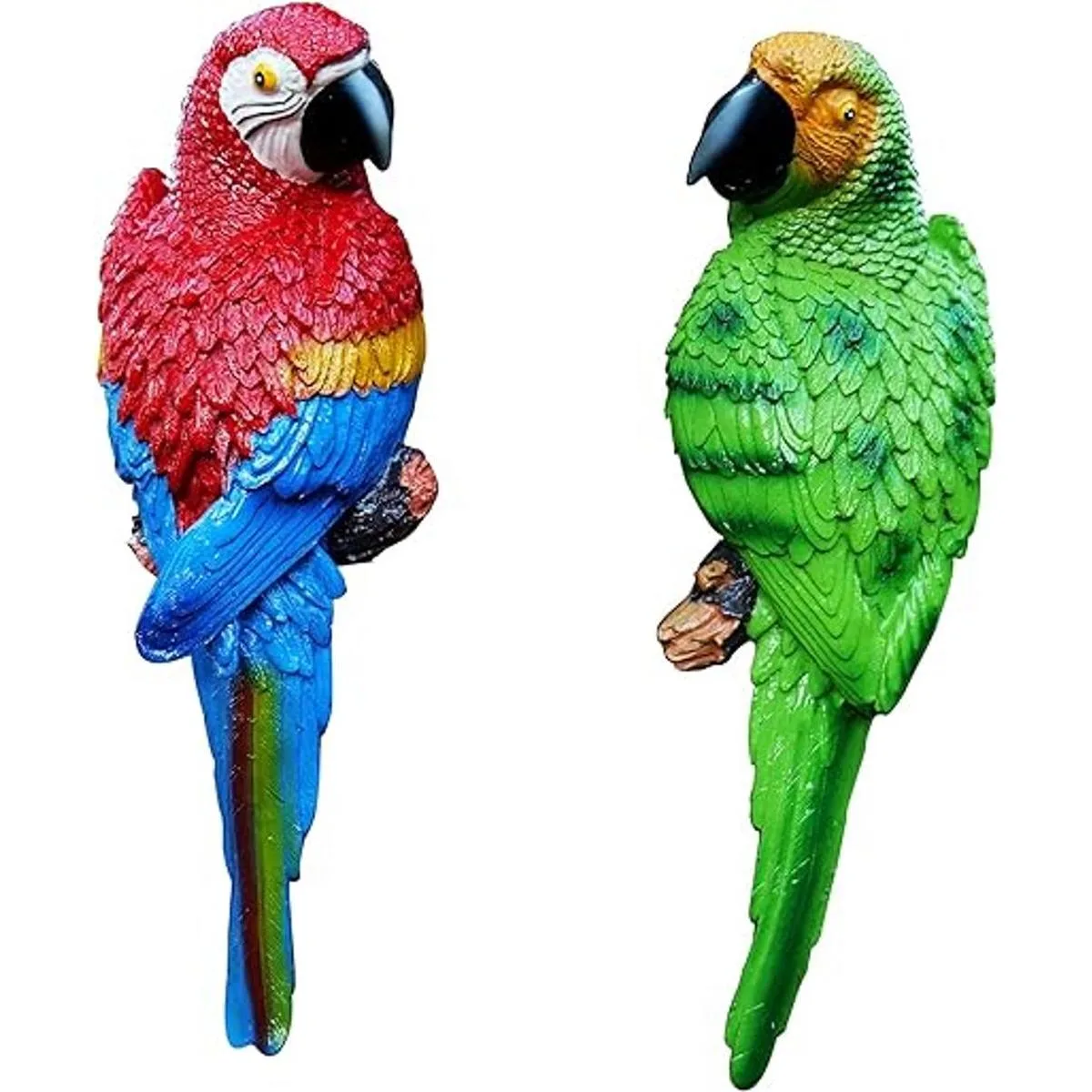 Paquete de 2 estatuas de loros artificiales colgantes de 12.5 pulgadas, para decoración de loros falsos grandes, para patio, árbol, patio, escultura de pared