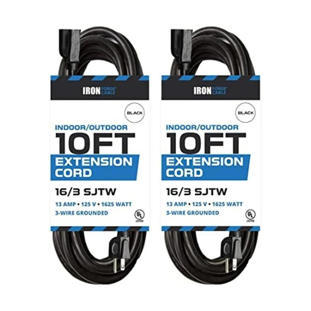 Paquete de 2 extensiones para el exterior Cable color negro de 163 de uso rudo, 6 o 10 pies de longitud, IFC163B10PK2