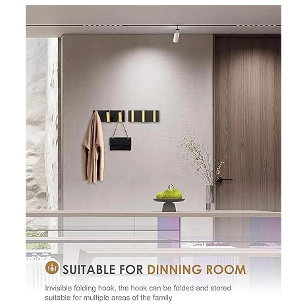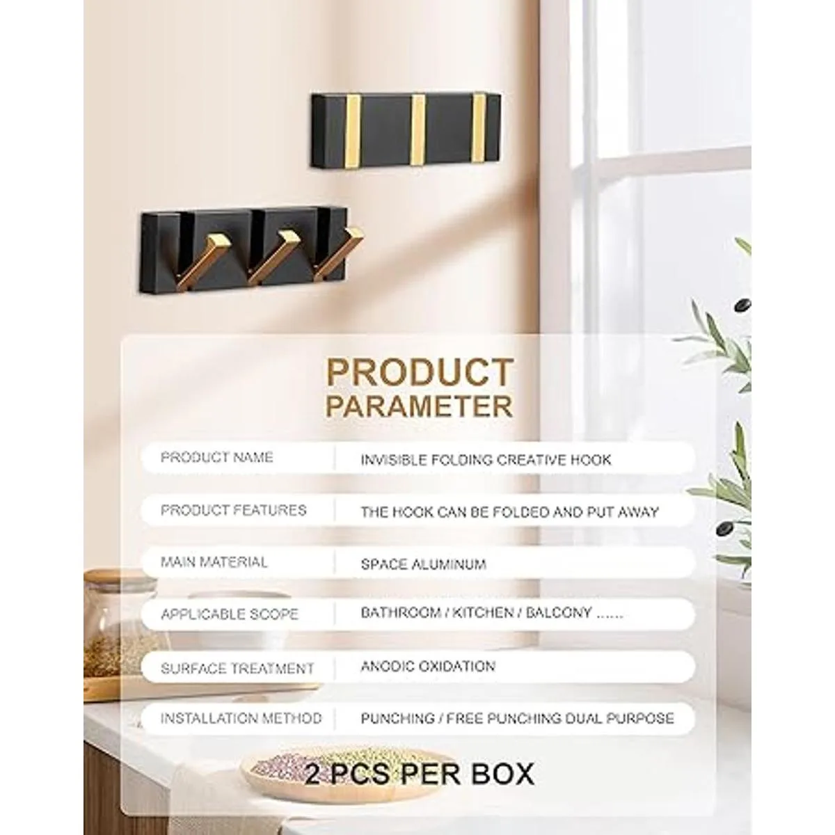 Paquete de 2 ganchos de pared impermeables de color dorado negro, ganchos de toalla para baño montado en la pared, gancho plegable negro para abrigo, sin perforaciones, gancho para montar en la pared, gancho para bata de puerta, gancho para toalla de baño, también para balcón, cocina