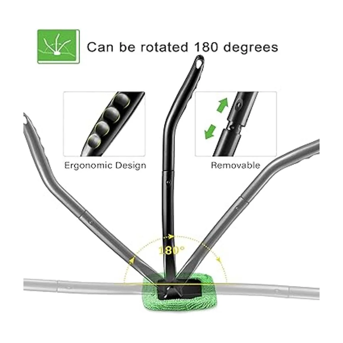 Práctico cabezal giratorio: el limpiador de ventanas de coche está diseñado con la cabeza de la varita de limpieza de coche que se puede girar 180 grados para adaptarse muy bien a la superficie curvada de vidrio, eliminando la suciedad y el polvo de los parabrisas o vidrio, ahorrando más esfuerzo