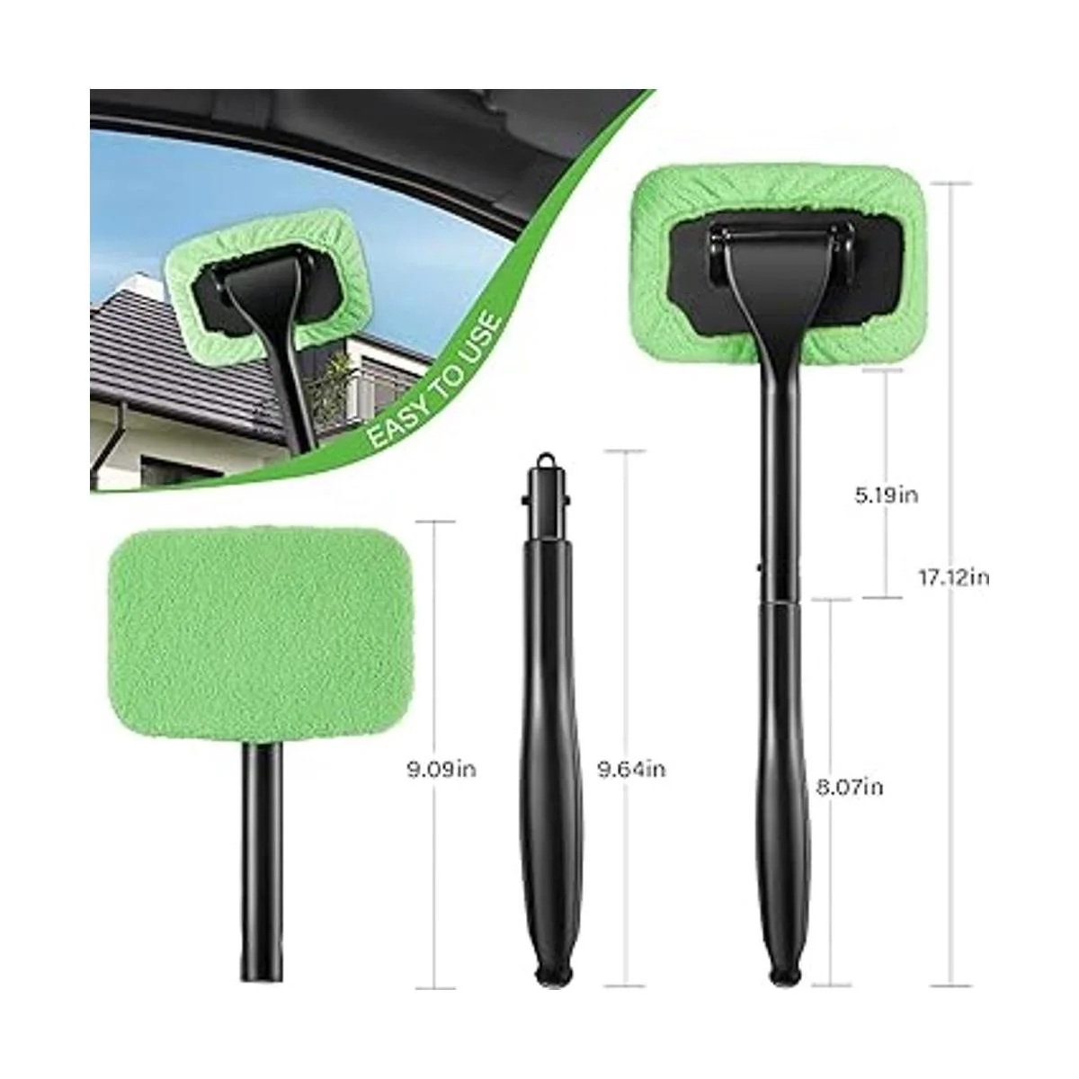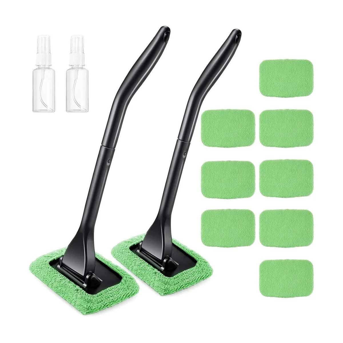 Paquete de 2 herramientas de limpieza de parabrisas, varita de limpieza de parabrisas, limpiador de ventanas automático con mango desmontable, 8 almohadillas de tela reutilizables y 2 botellas de pulverización para el interior del automóvil verde