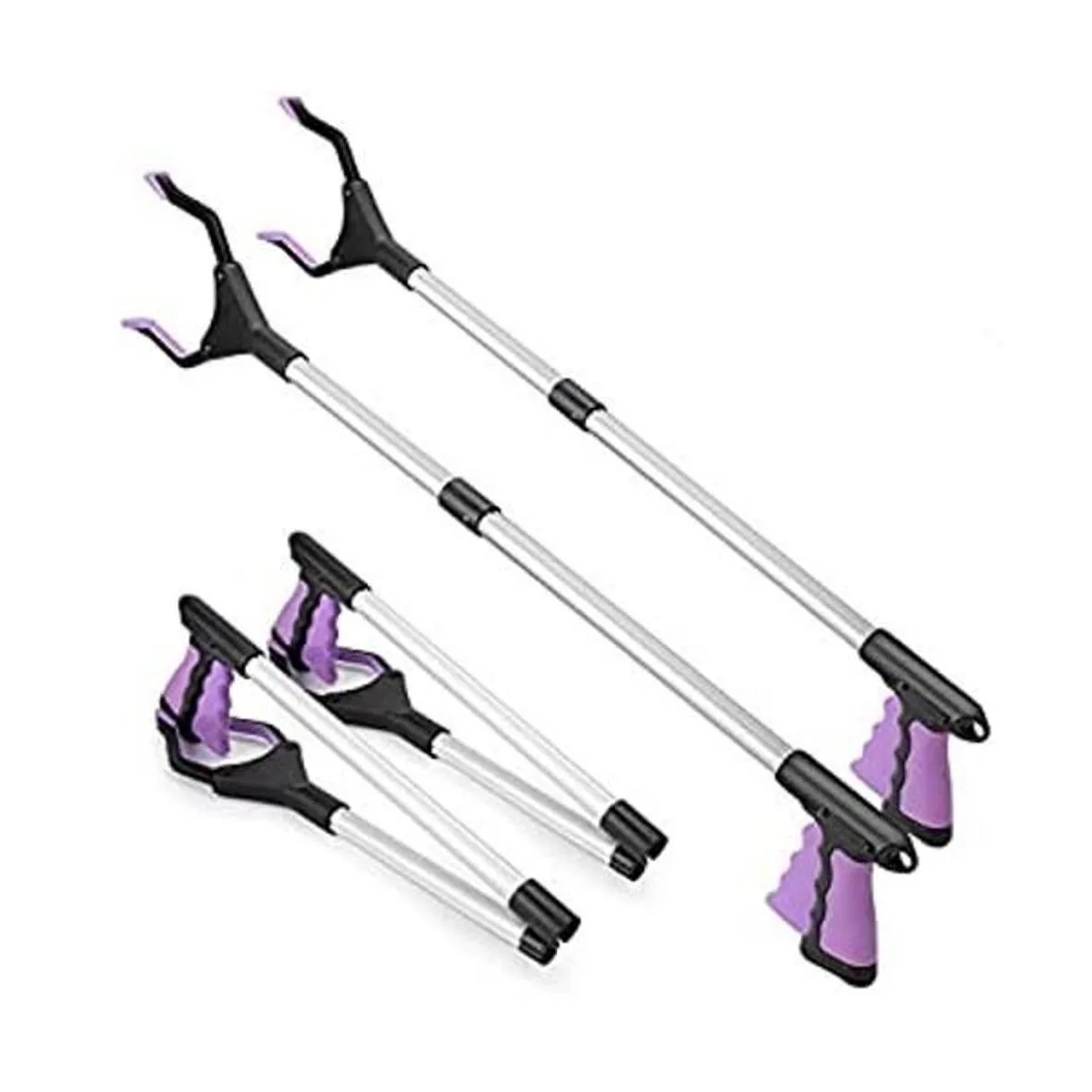 Paquete de 2 herramientas de recogida de alcance, herramienta de agarre de 32 pulgadas de largo, agarrador de basura para personas mayores, herramienta de agarre superior, recogedor de basura, herramienta de agarre de garra morado