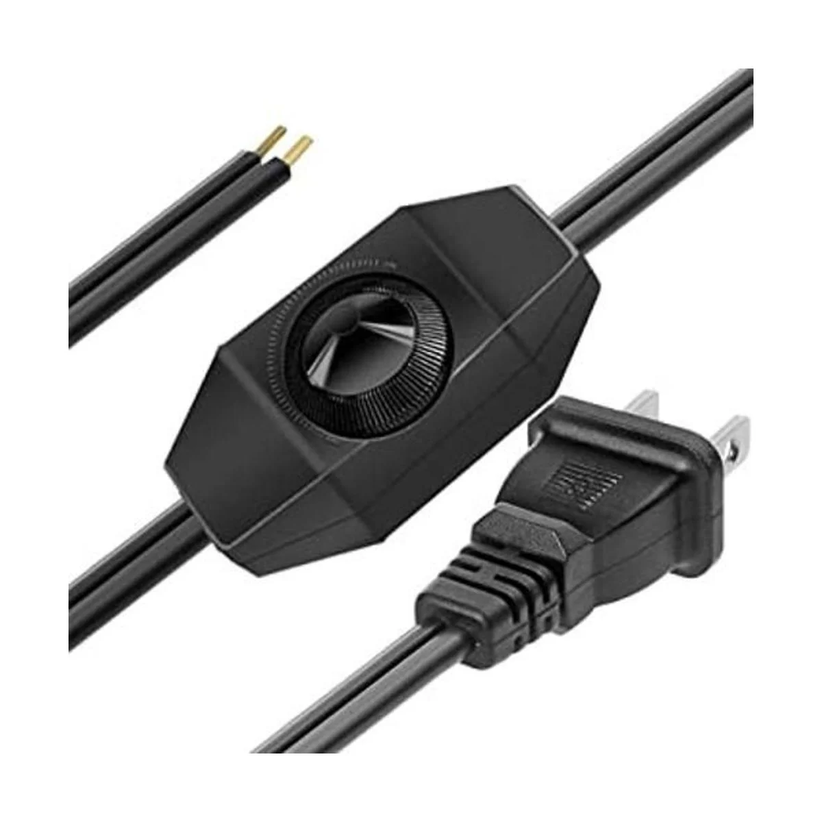 Paquete de 2 interruptores de atenuación rotativos con certificación UL con cable de alimentación de 5.0 pies para lámpara halógena e incandescente, compatible con luces LED regulables