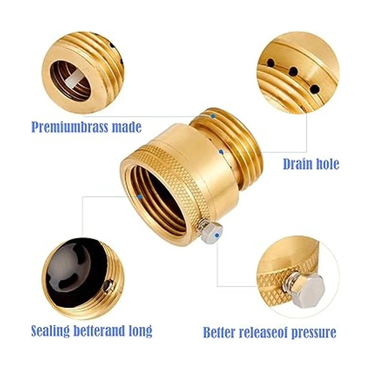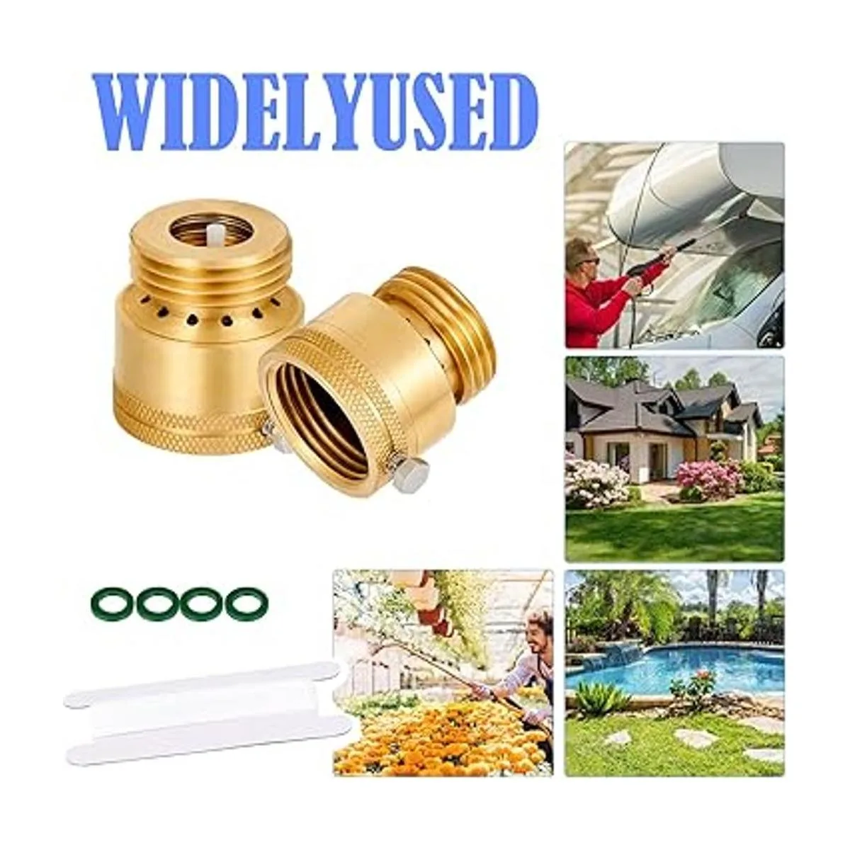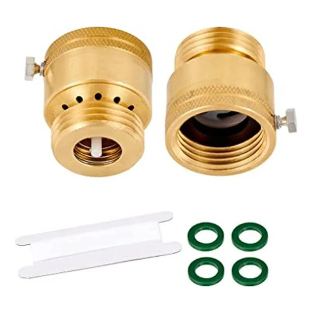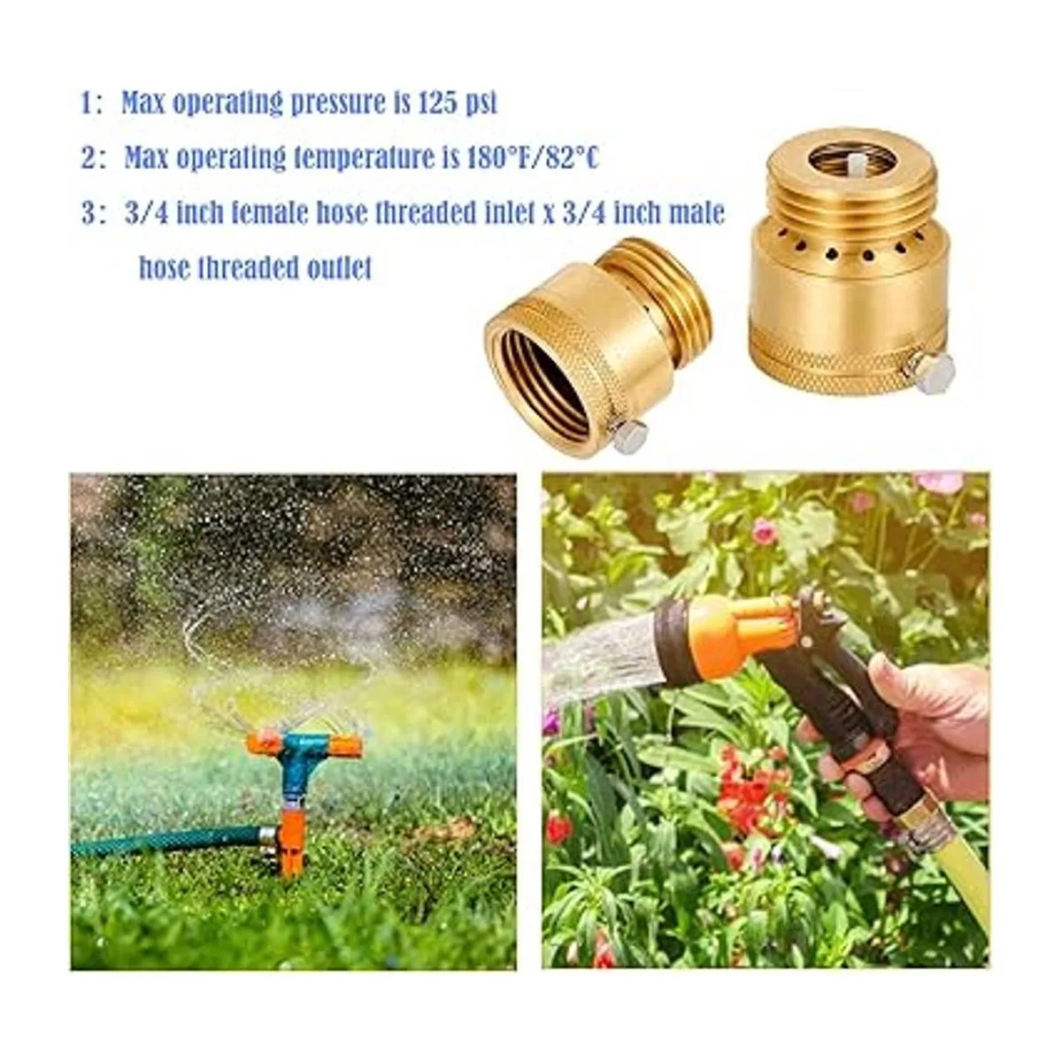 Paquete de 2 interruptores de vacío de latón de 34 pulgadas GHT Hose Bibb Connector Preventor de reflujo para conexión de manguera de jardín, espiga, RV, conector de prevención de reflujo con cinta y arandelas adicionales