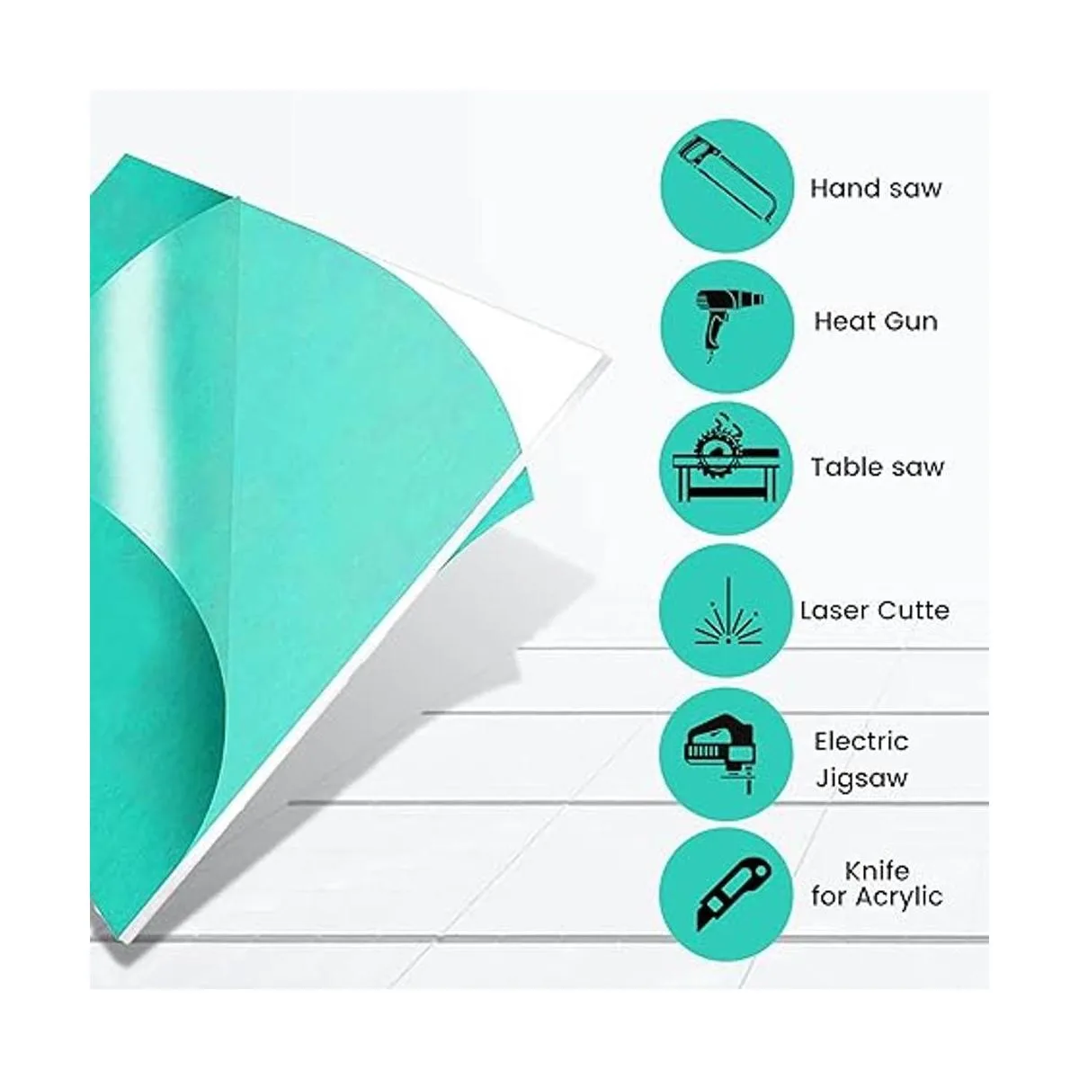 Corta con láser, sierra eléctrica o herramientas de mano: corta, taladra y pule fácilmente estas hojas acrílicas. Estas hojas no se derriten ni producen marcas de quemaduras durante el grabado láser. También puedes utilizar una sierra ingletadora, sierra de calar, sierra de mesa o router para cortar las hojas al tamaño y forma deseados. El grosor de 1/8 también es adecuado para puntuar con herramientas manuales como un cortador de caja. Y no te preocupes por los bordes ásperos. Puedes pulir fácilmente los bordes de la lámina acrílica con lijadoras tradicionales