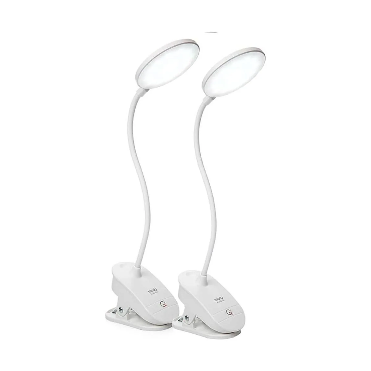 Paquete de 2 lámparas Miady con clip, lámpara de lectura alimentada por pilas, luz de clip para cama con 3 niveles de brillo, recargable por USB, lámpara de lectura