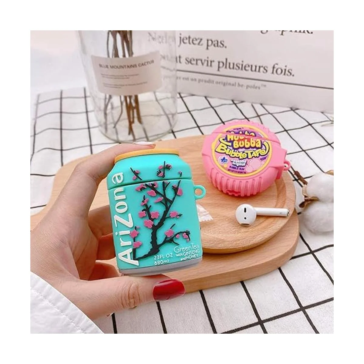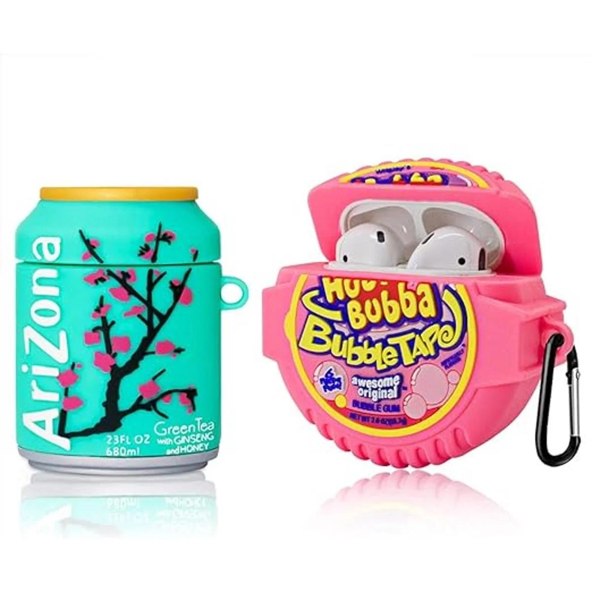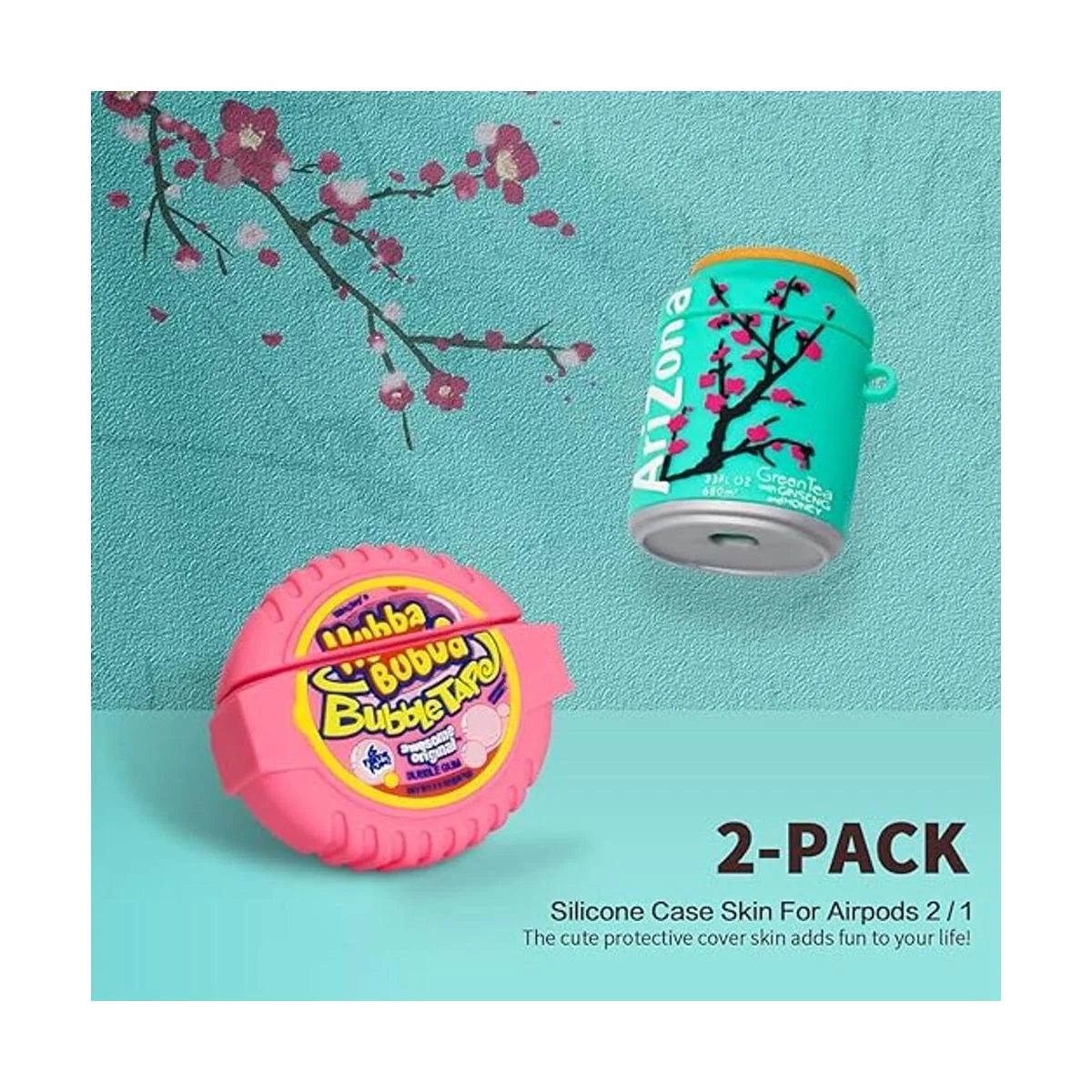 Paquete de 2 Linda funda para Airpod 21, 3D de dibujos animados kawaii, chicles de burbujas y bebidas, diseño de funda para Airpods, niñas, niños, adolescentes, a la moda, a prueba de golpes, accesorios protectores para la piel, funda de silicona para Airpods 1 y 2