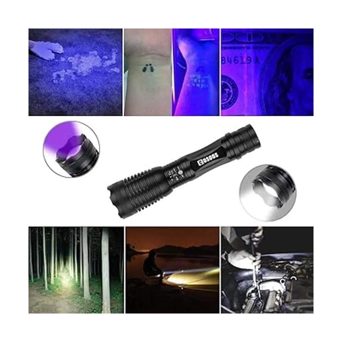 Linterna 2 en 1 No solo es un simple detector de orina, sino también una linterna LED normal. La linterna UV de 395 nm es una herramienta esencial para detectar orina/manchas, escorpión, licencia de conducir, tarjetas de identificación oficiales, pasaportes y aduanas. Linterna de 500 lúmenes para camping, senderismo, ciclismo, exploración, haz máximo de hasta 600.4 ft.
