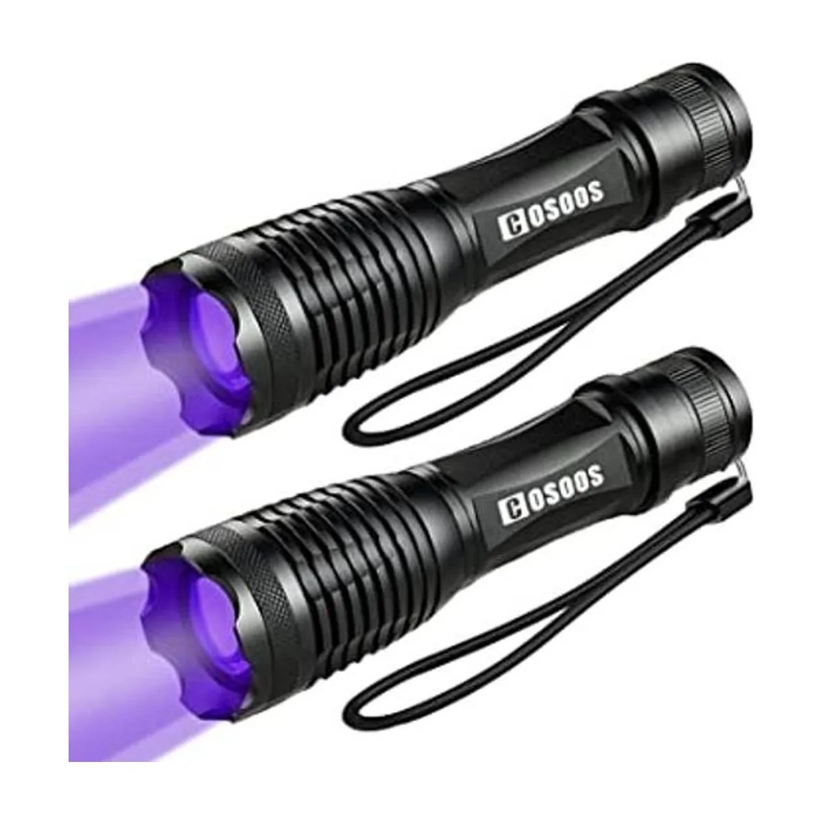 Paquete de 2 linterna UV Blacklight, COSOOS 2 en 1 linterna táctica LED y detector de orina de mascotas de luz negra de 395 nm para orina de perrogato, manchas secas, chinches de cama, escorpiones.