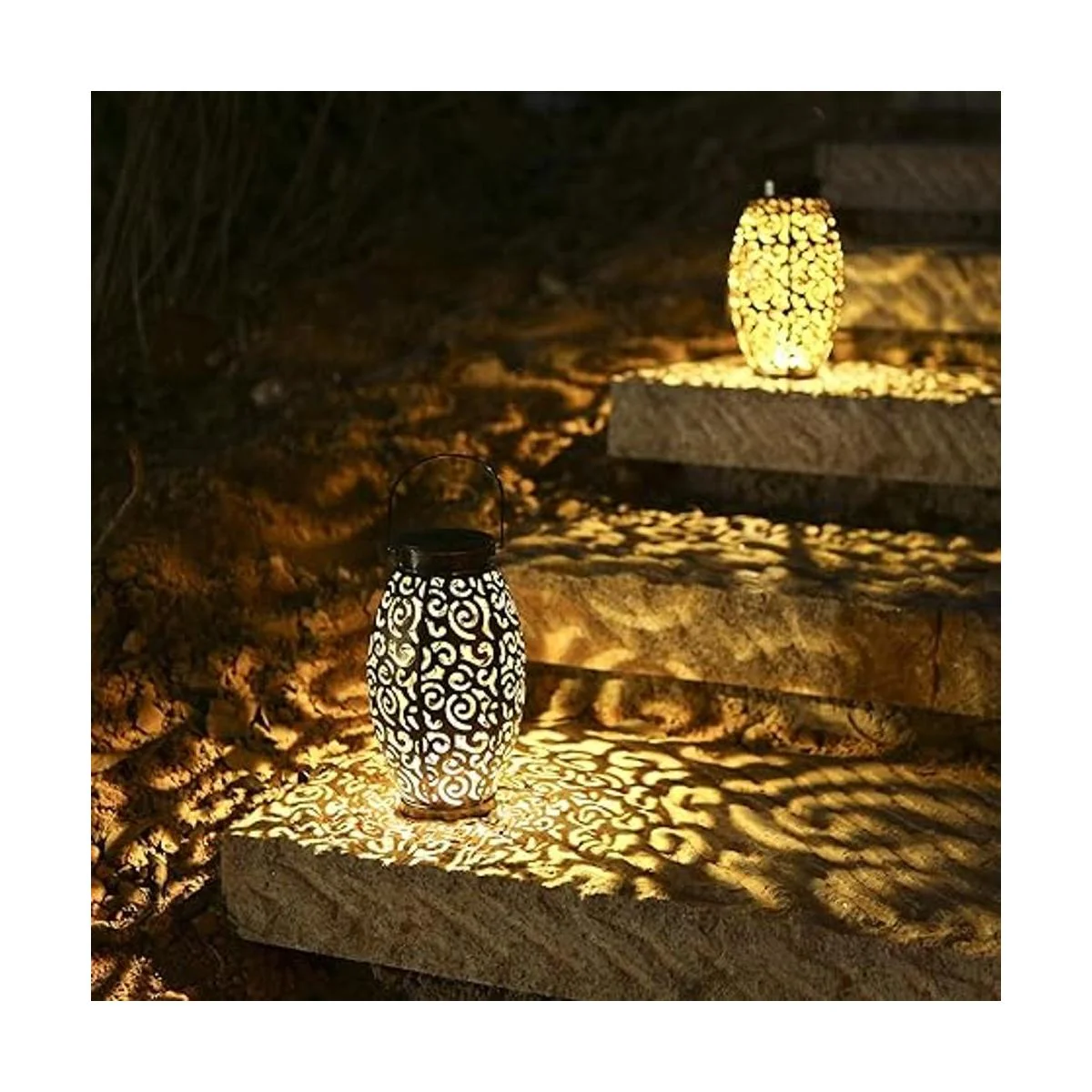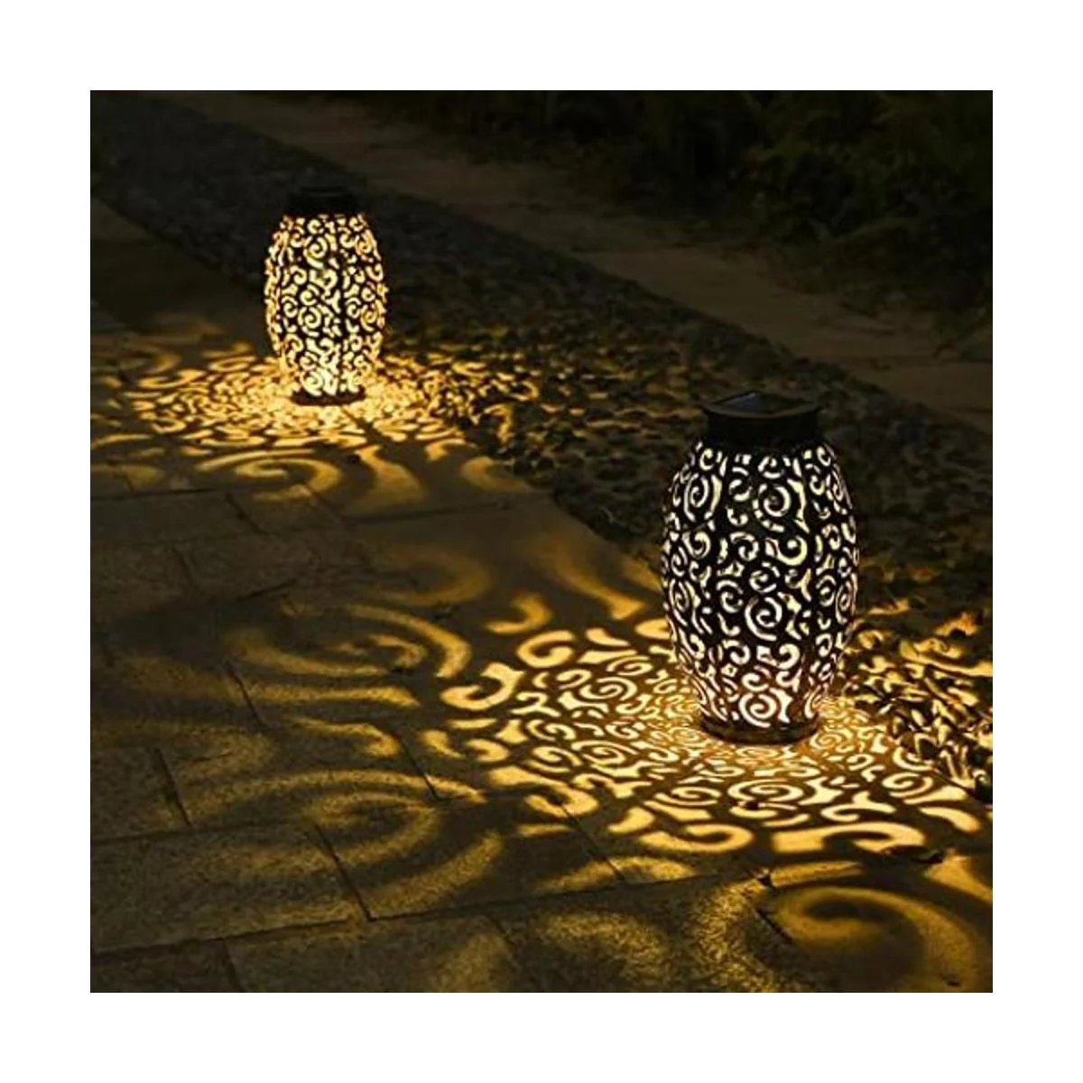 Luces solares decorativas para exteriores La linterna solar de Tomshine tiene un hermoso patrón hueco, que proyecta un encantador patrón por la noche. El diseño es único y muy decorativo. La iluminación suave añade mucha belleza al jardín por la noche, que es muy adecuada para el jardín y el patio