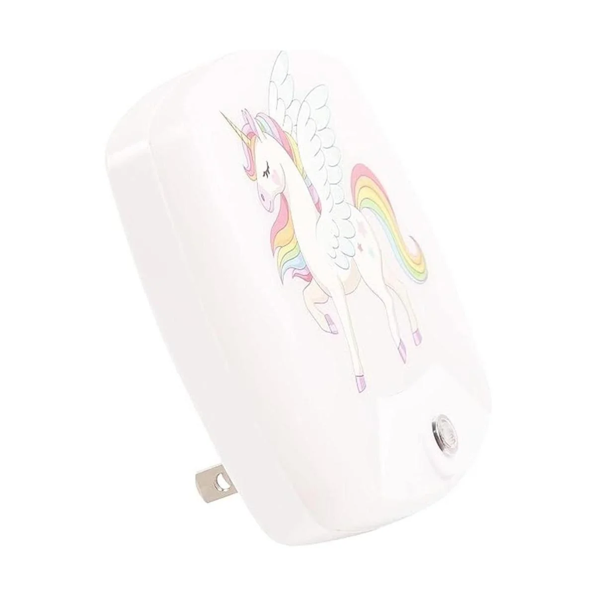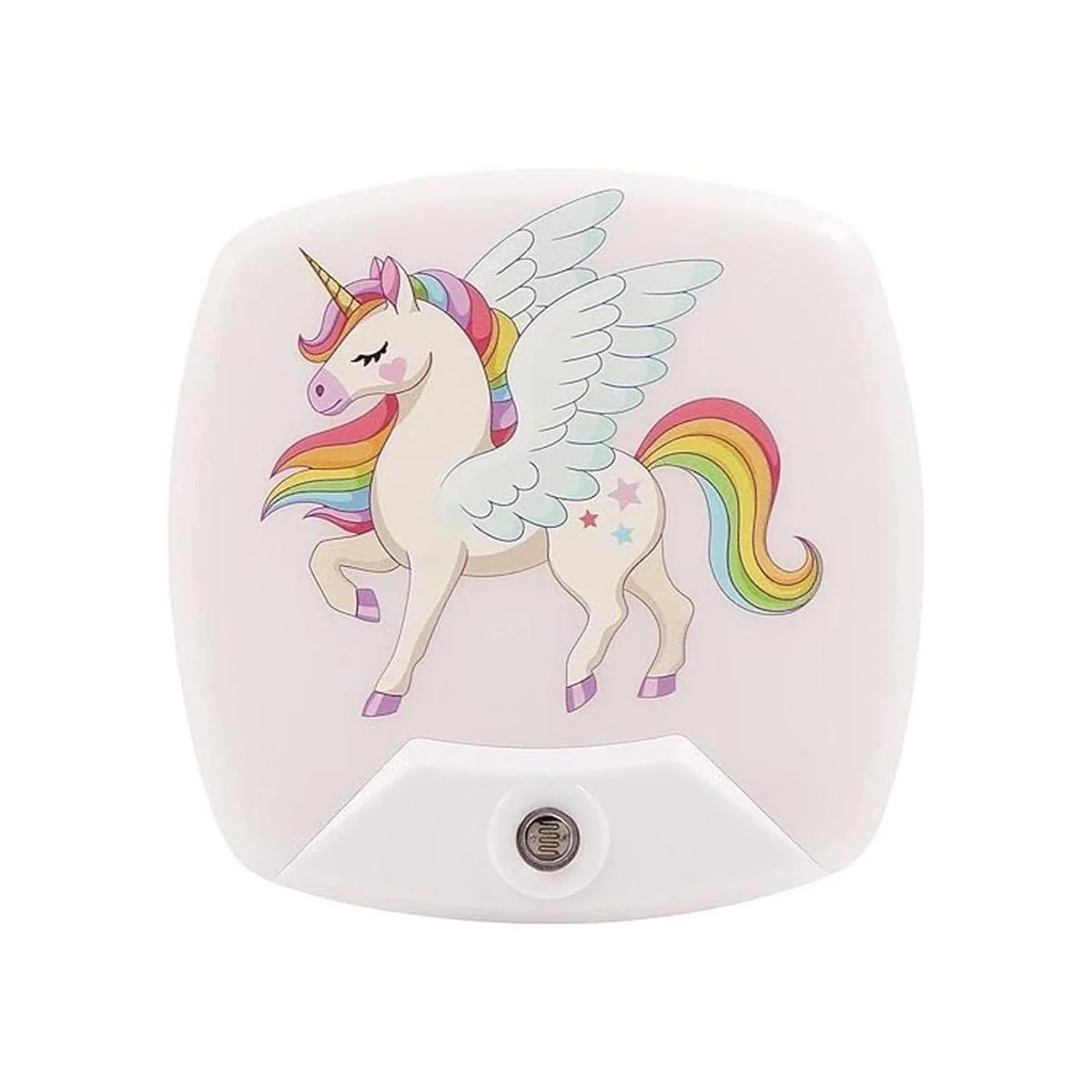 Paquete de 2 luces LED de unicornio de dibujos animados enchufables para niños, lámpara de pared con sensor de luz de sueño para niños, luces nocturnas controladas automáticamente, para bebés, lactancia, D