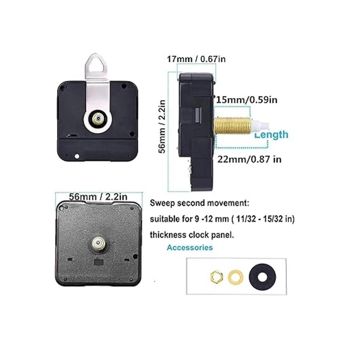 Medición de hora precisa y motor silencioso: el tamaño total del eje es de 0.866 in, la longitud de la rosca es de 0.591 in; movimiento de barrido, adecuado para panel de reloj de 9 a 0.472 in de grosor. Cuenta con mecanismo de reloj de alta precisión, que ofrece precisión y fiabilidad del relojero. Equipado con Movimiento de barrido, no tictac; funciona con una batería AA.