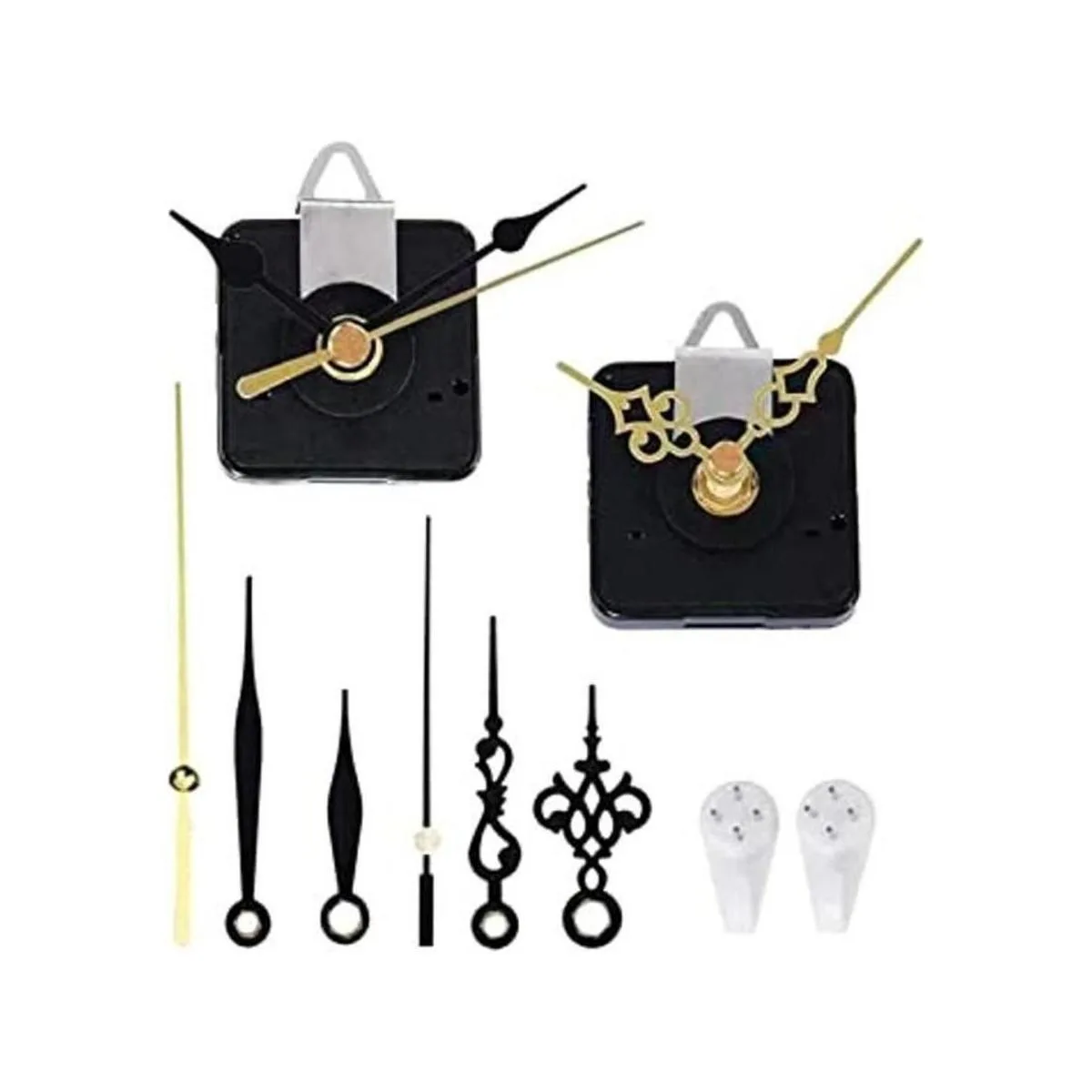 Contenido del paquete: 2 movimientos de reloj, 2 ganchos de metal, 2 ganchos de montaje, 4 manecillas de segundos, 4 manecillas de minutos, 4 horas de mano, 4 arandelas de plástico, 4 arandelas de latón y 4 tuercas de latón, vienen con una caja protectora especialmente diseñada.