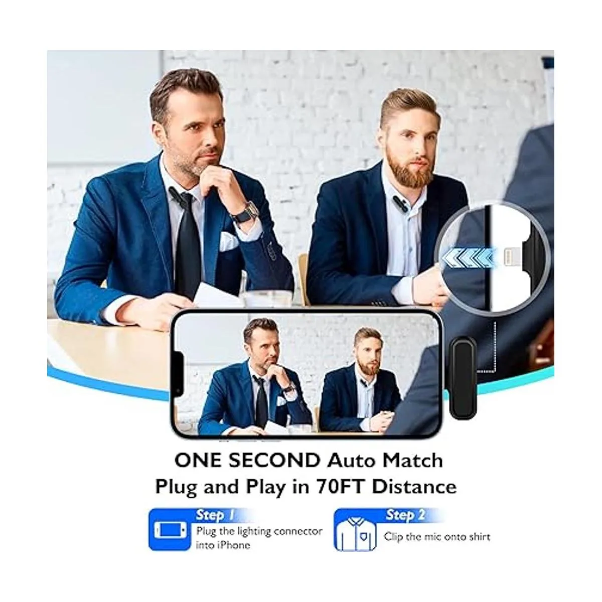 Plug and Play: sin Bluetooth, no necesita ninguna aplicación Simplemente conecta el conector de iluminación al teléfono y engancha el mini micrófono en la camisa, comienza a funcionar en un segundo. Dos paquetes de micrófono lav permiten que dos personas participen en una grabación de video juntos. Prvoide la eficiencia y la comodidad para un trabajador de equipo. Adecuado para vlog, entrevista, transmisión en vivo, blog, podcast, YouTube, Instagram, Zoom, TikTok, tutorail de video en línea, grabación de canto, etc.