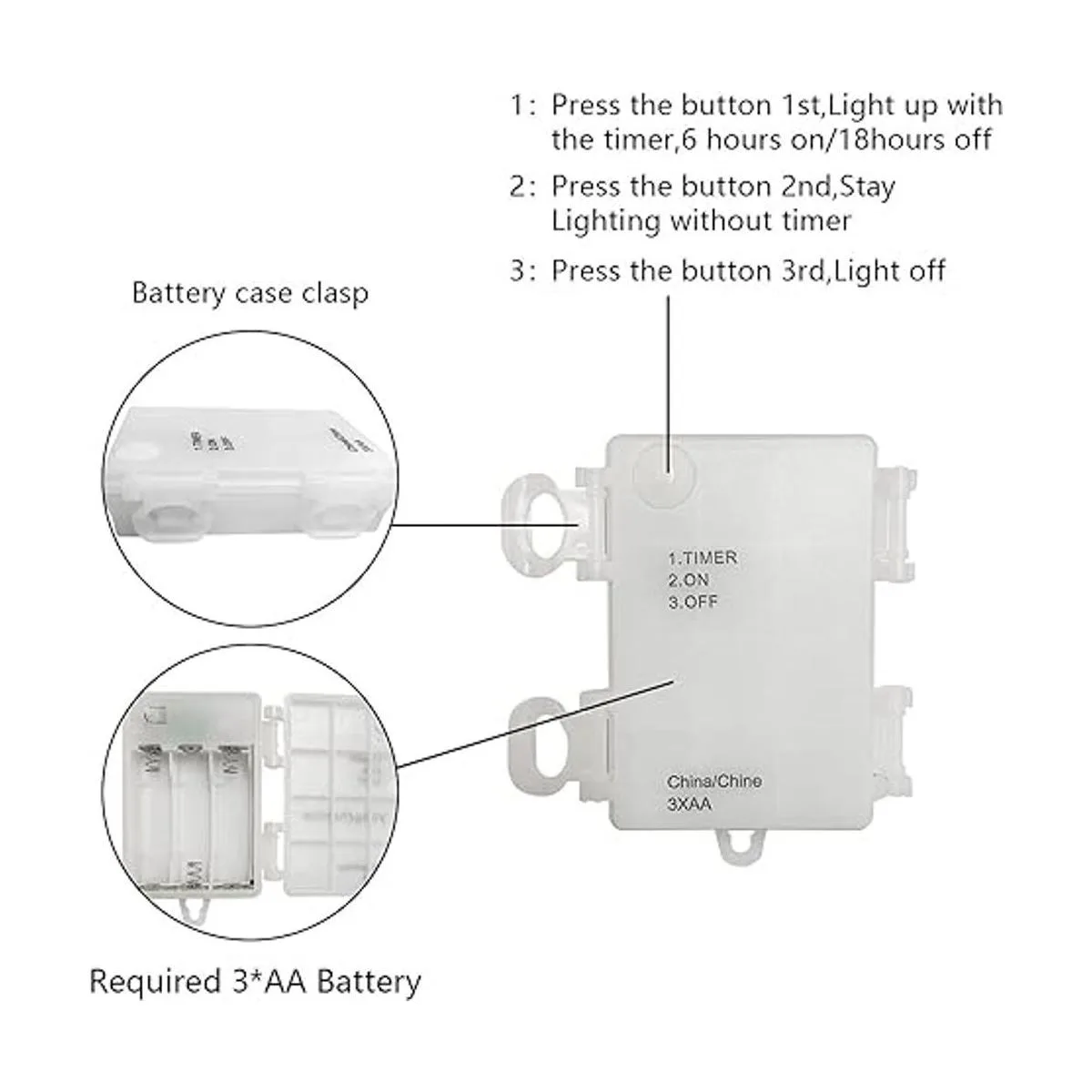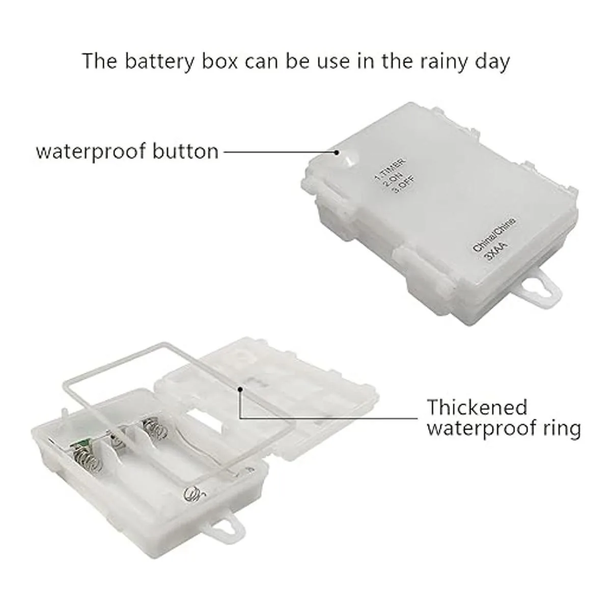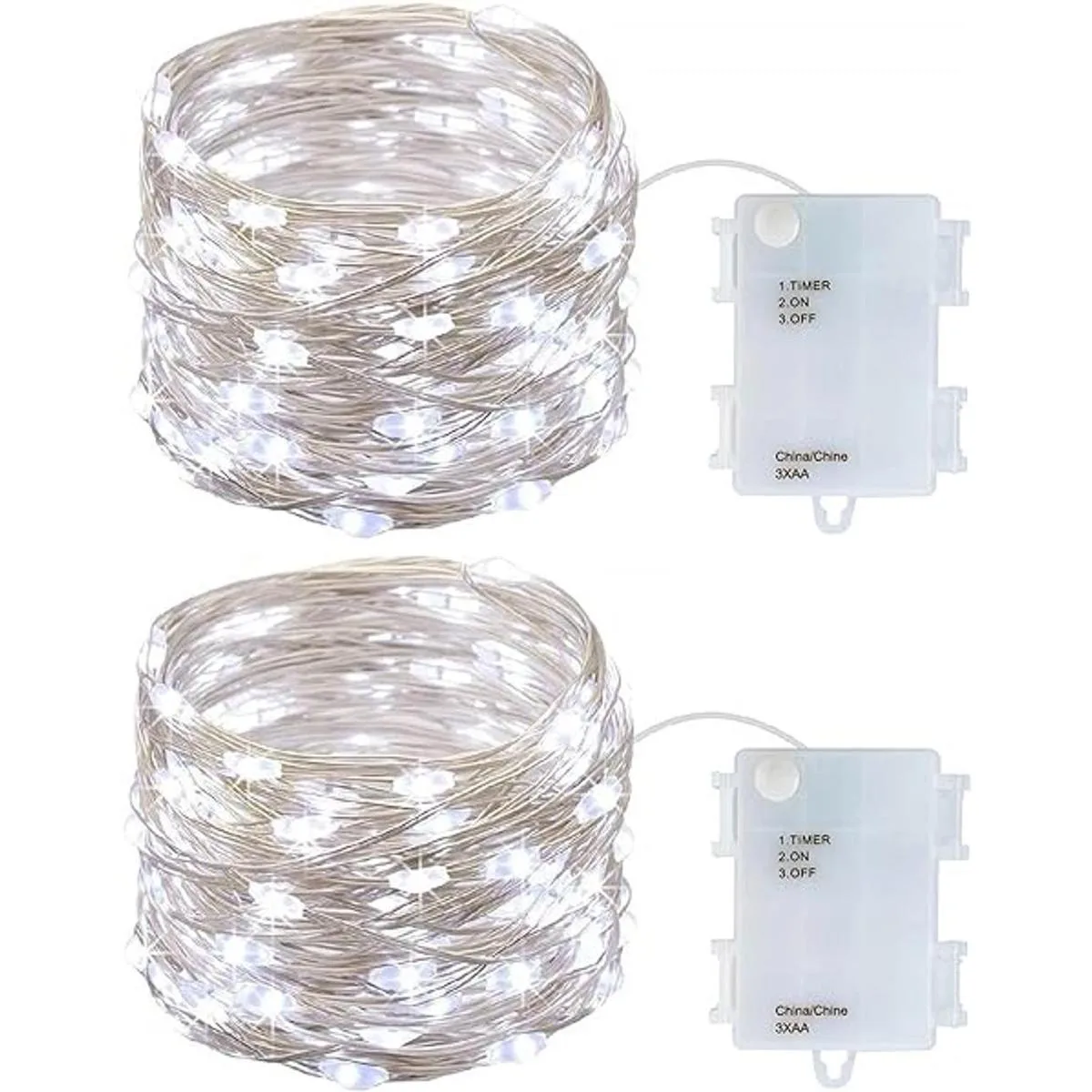 Paquete de 2 mini luces con pilas, luces LED de interior con temporizador de 6 horas de encendido y 18 horas de apagado para decoración de bodas, 50 unidades de LED, alambre de plata de 18 pies