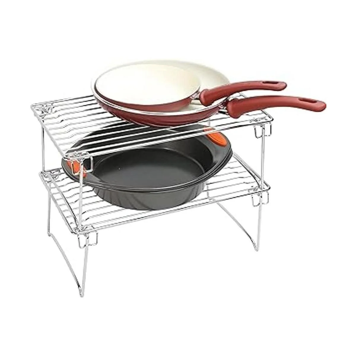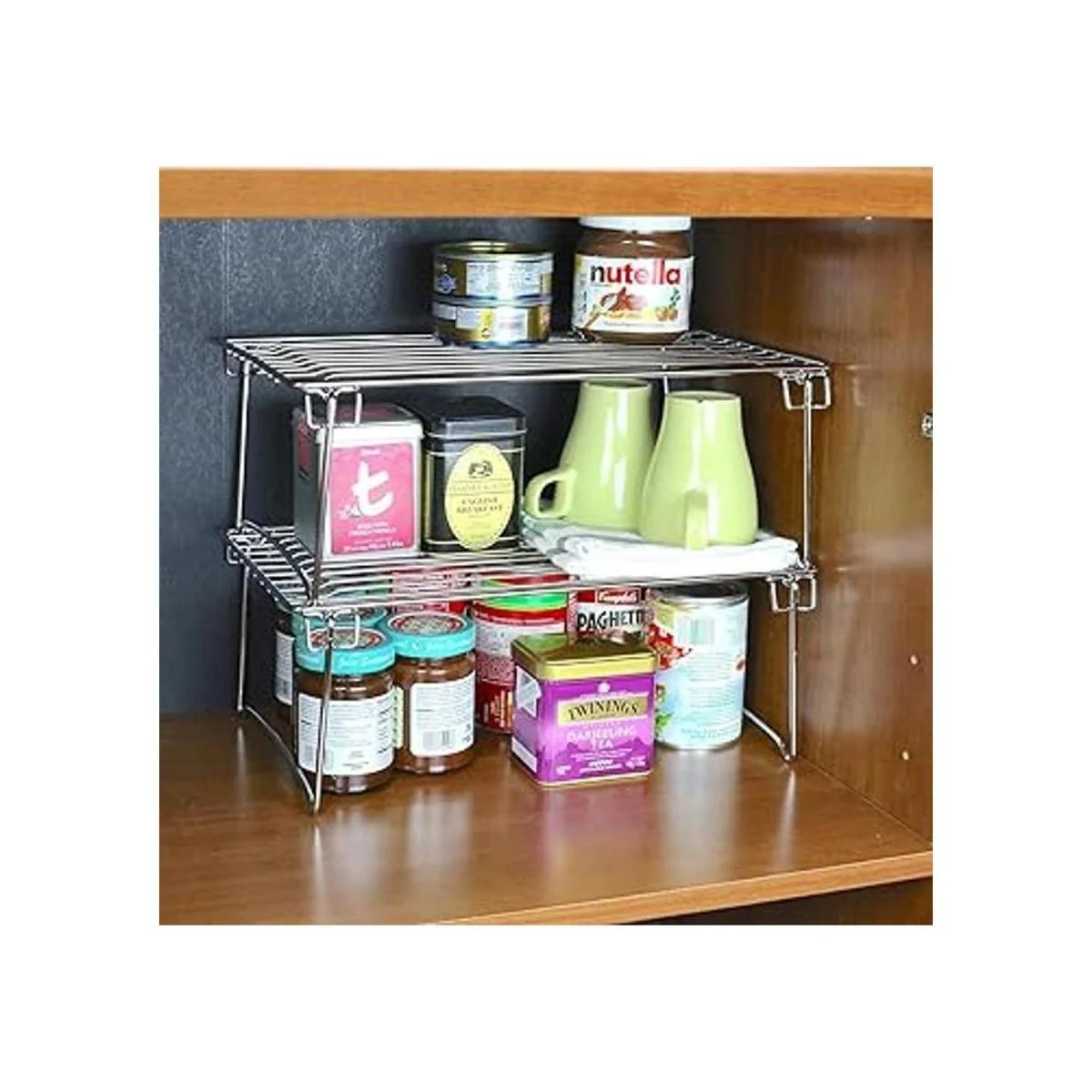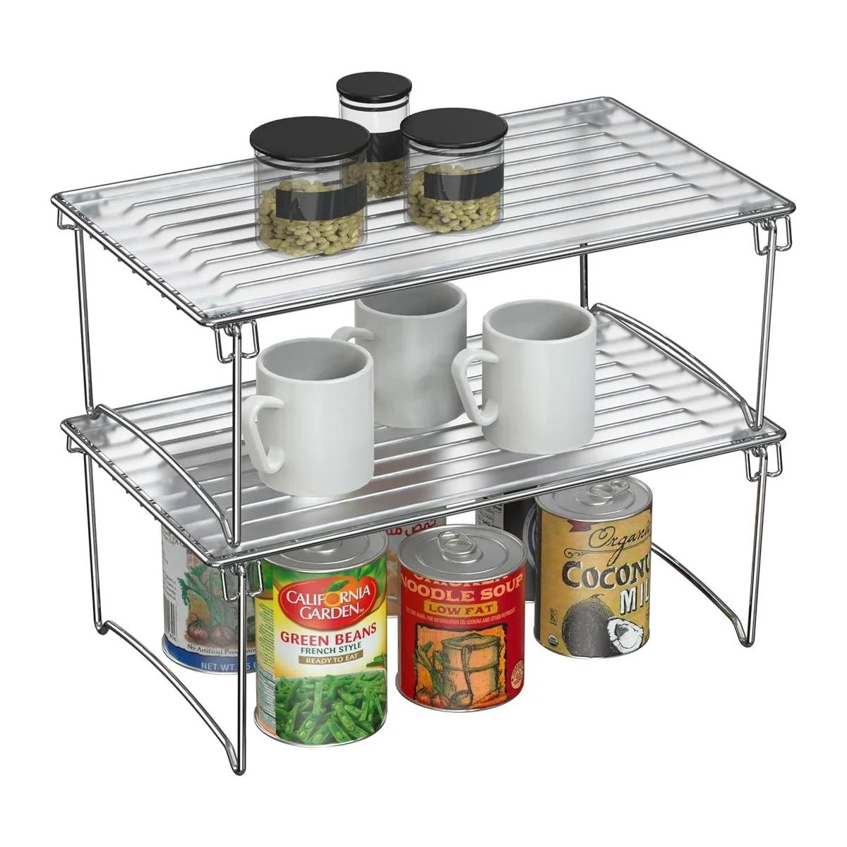 Paquete de 2 organizadores apilables para armarios de cocina Cromados