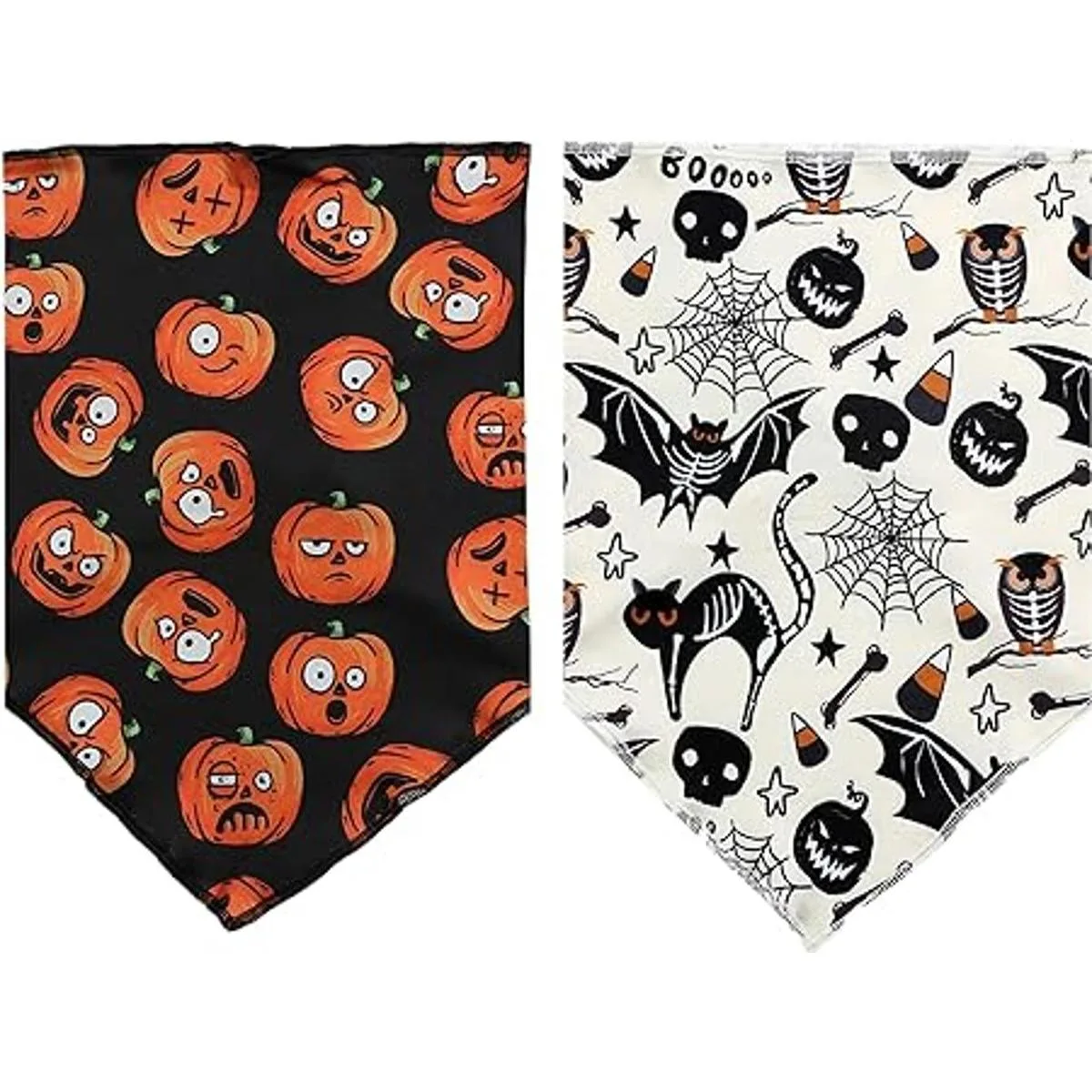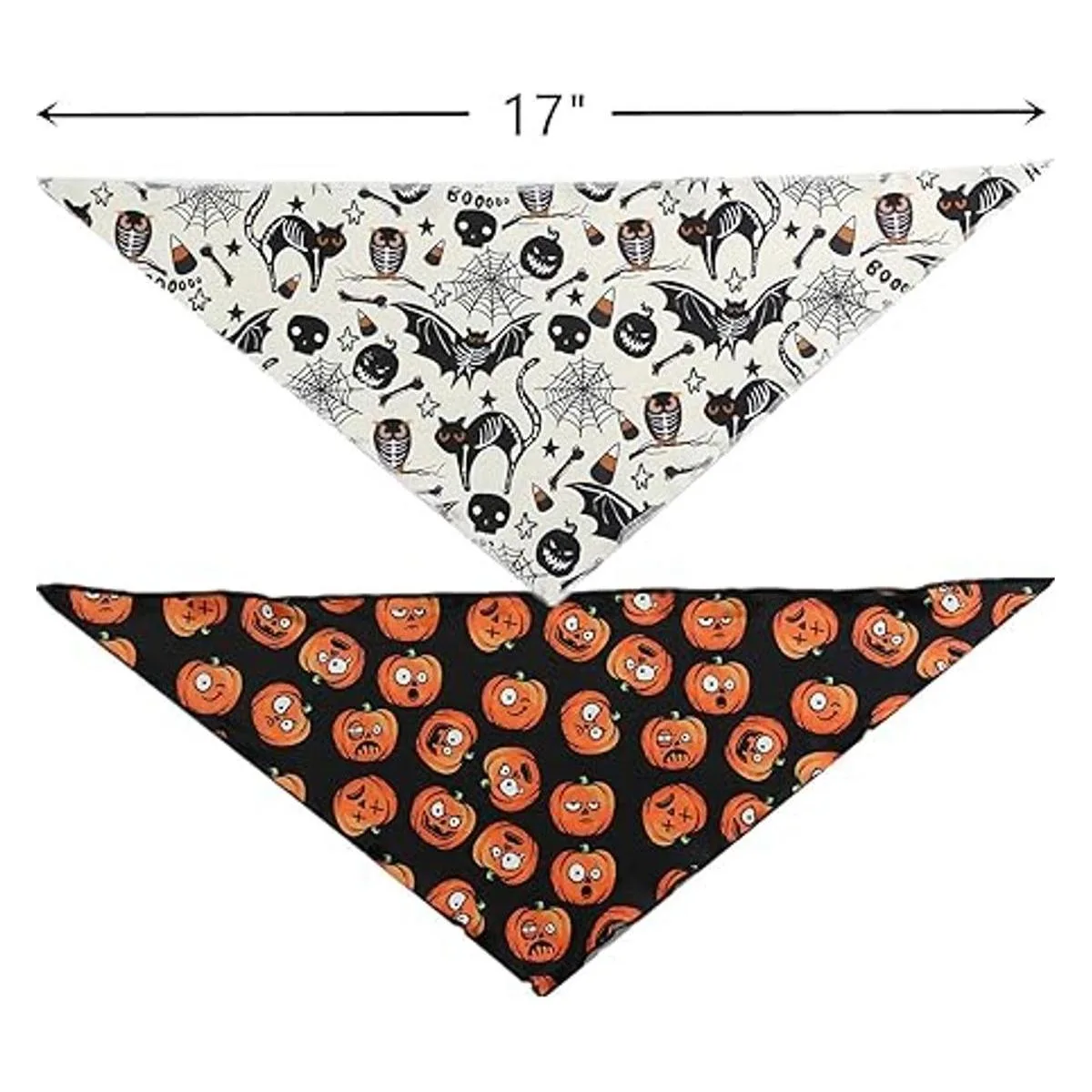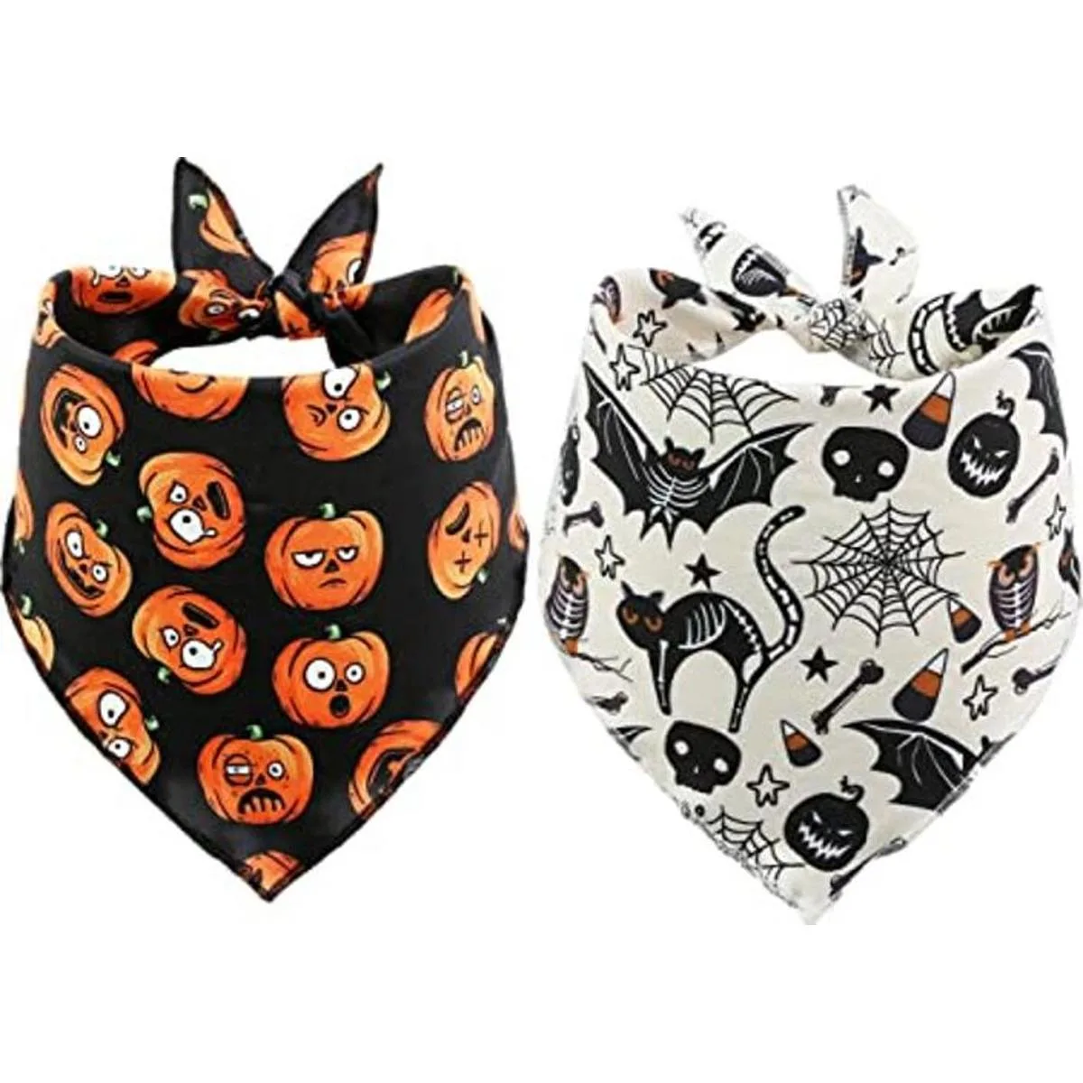 Paquete de 2 pañuelos de Halloween para perros, triangulares baberos para mascotas