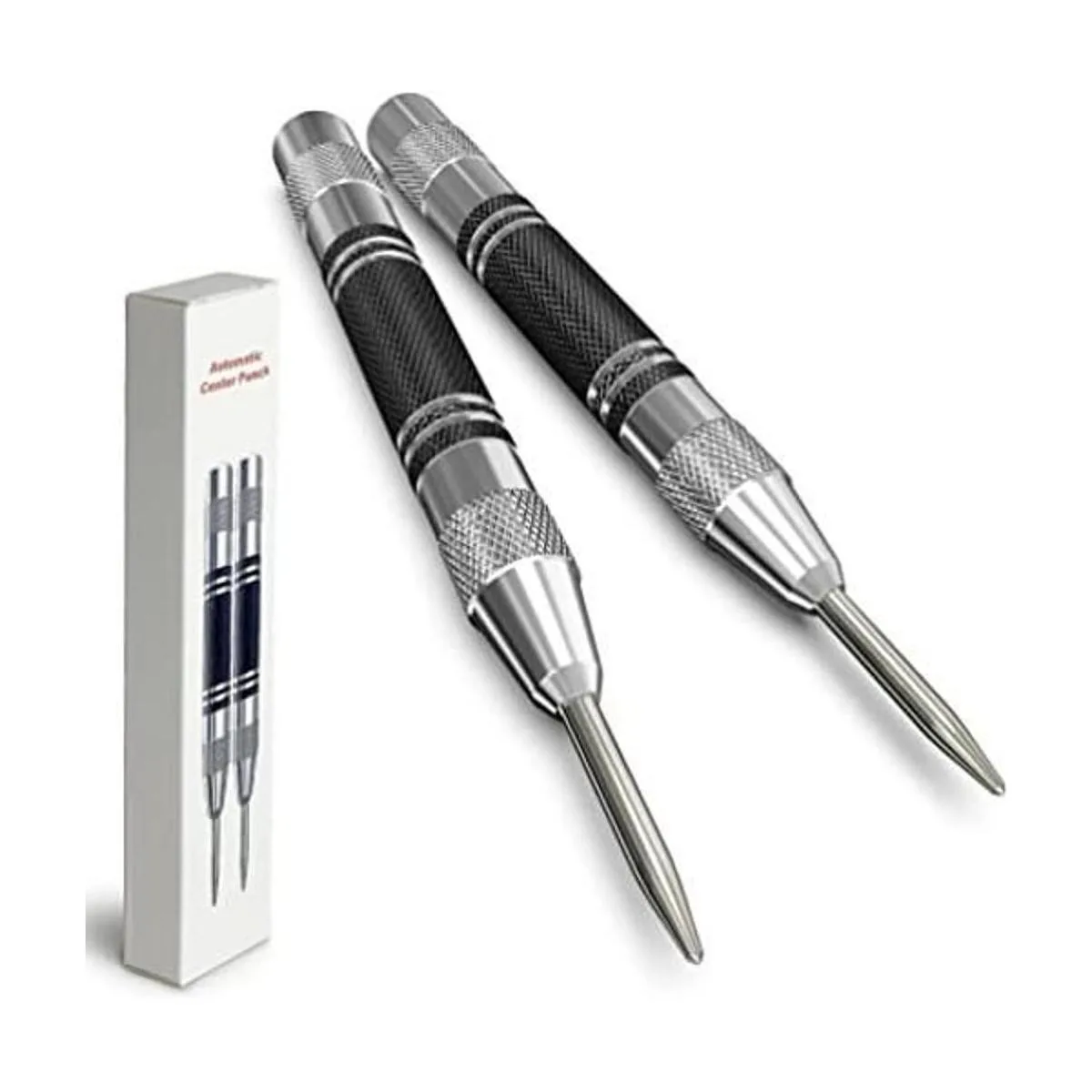 Paquete de 2 perforadores centrales automáticos, perforadores centrales de acero resistente de 5 pulgadas con herramienta de perforación de tensión ajustable para metal, madera, vidrio, plástico, adecuado para los amantes del bricolaje