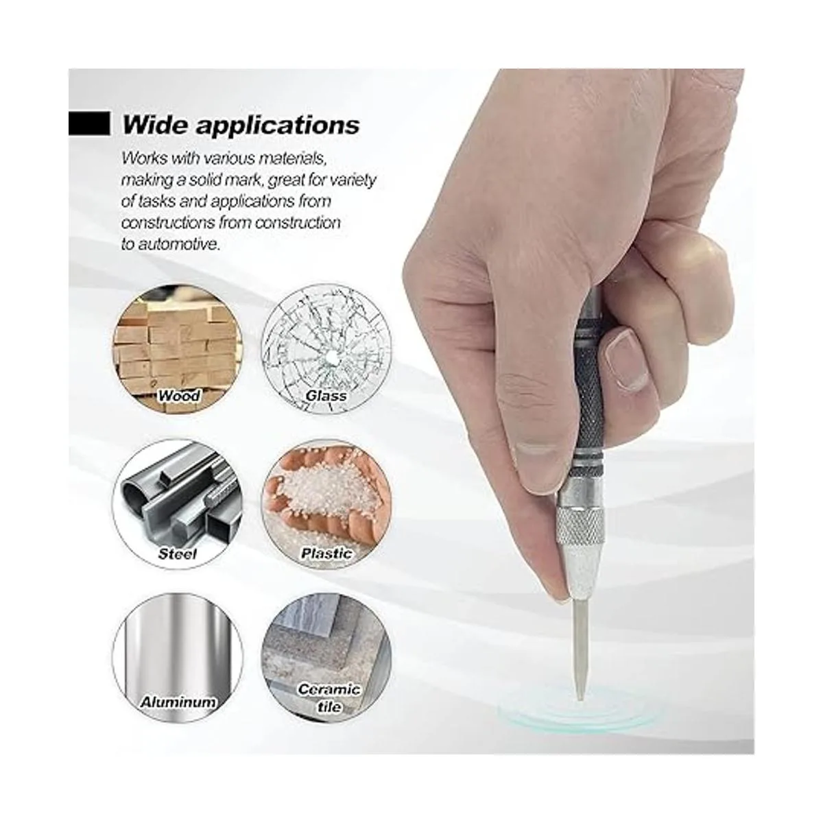 Ampliamente utilizado: el perforador central automático multifuncional es adecuado para una variedad de tareas, como marcas en materiales, como herramientas de emergencia de coche, instalación de muebles, mantenimiento de máquinas, martillo de emergencia alternativo, etc. Adecuado para posicionar acero, aluminio, hierro, PVC, acero, paredes, madera, etc., también se puede utilizar para emergencias de vehículos como una herramienta de rotura de vidrio de rescate de ventanas laterales.