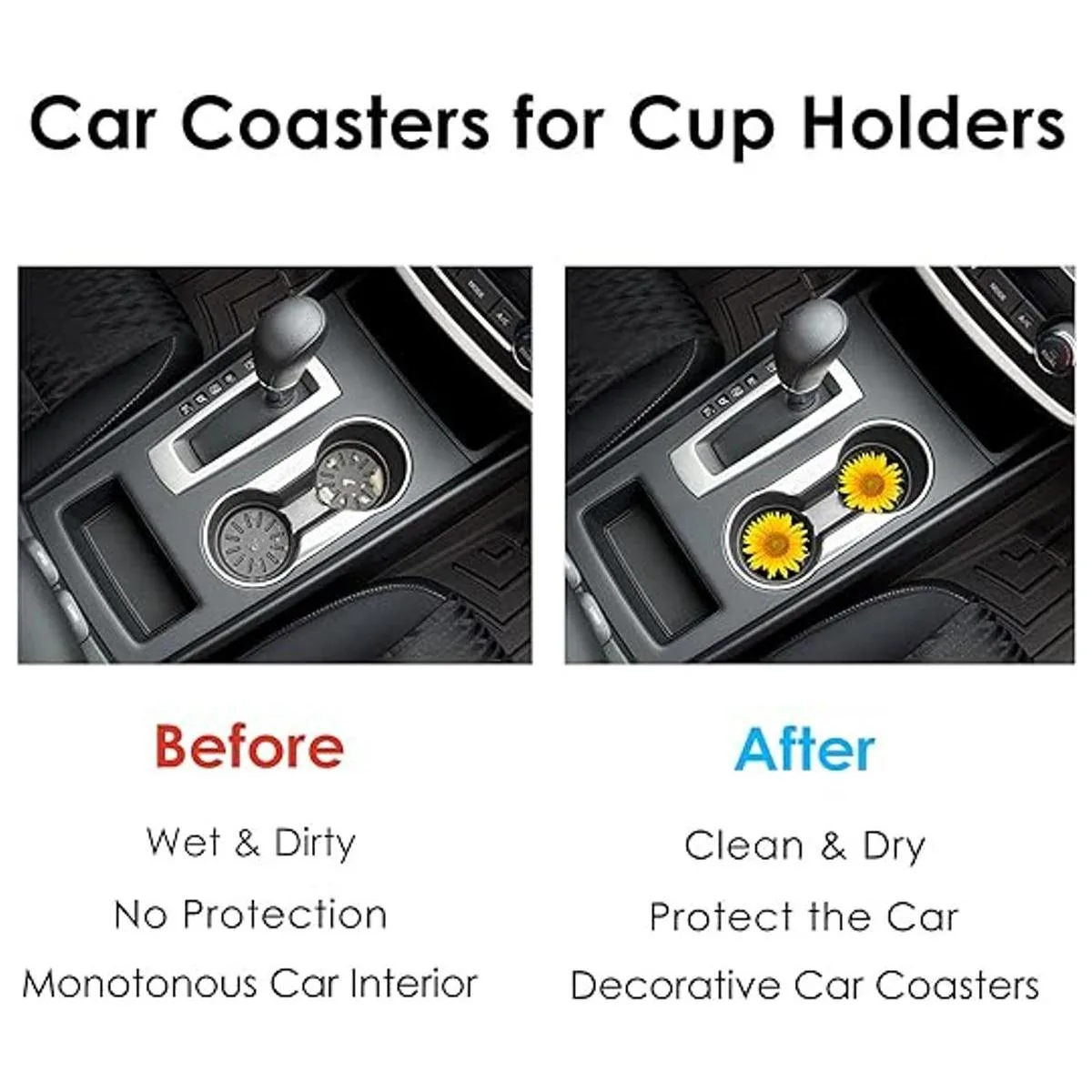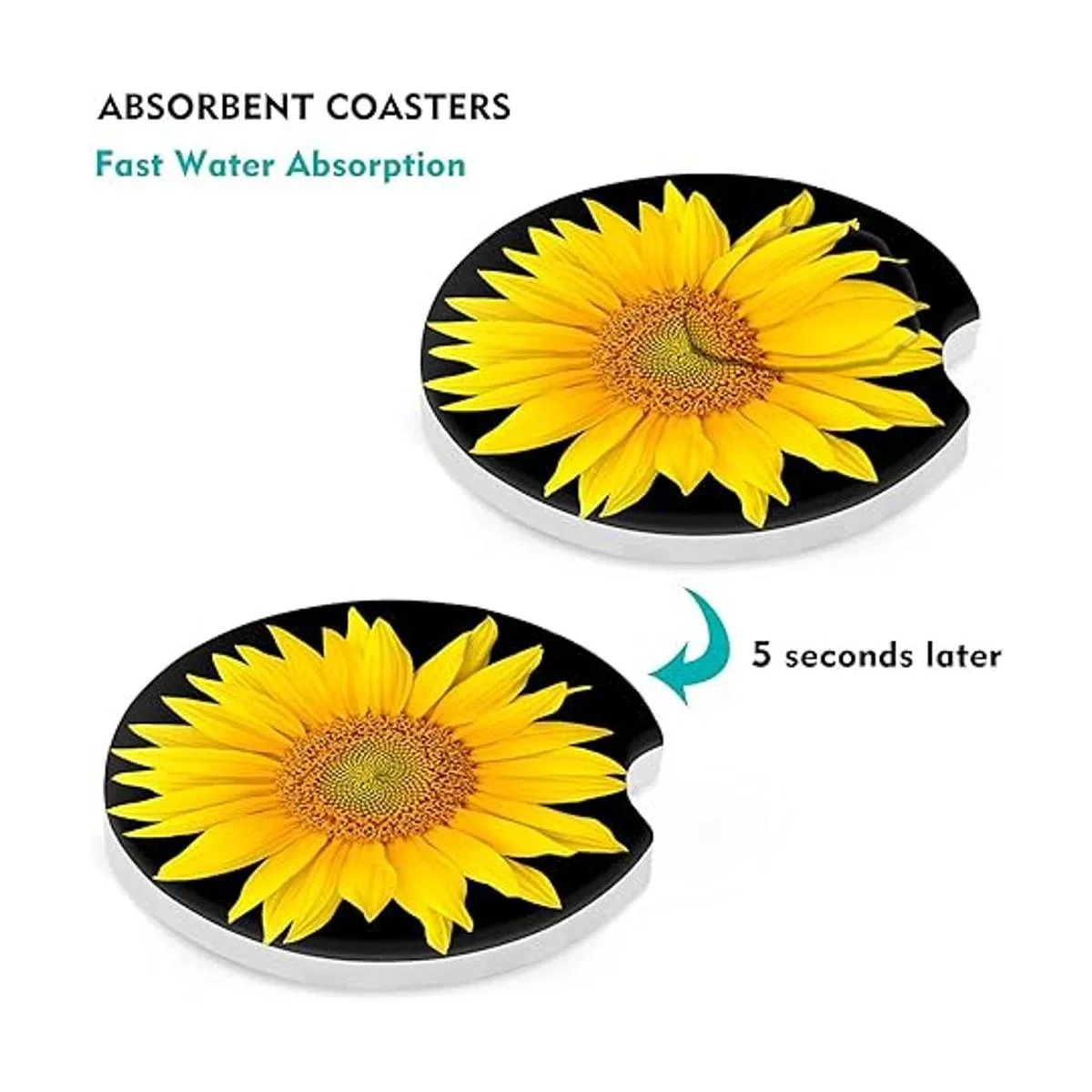 Paquete de 2 posavasos para automóvil, pequeños de 2.56 pulgadas de piedra, absorbentes, para mujeres y hombres, portavasos para bebidas girasol