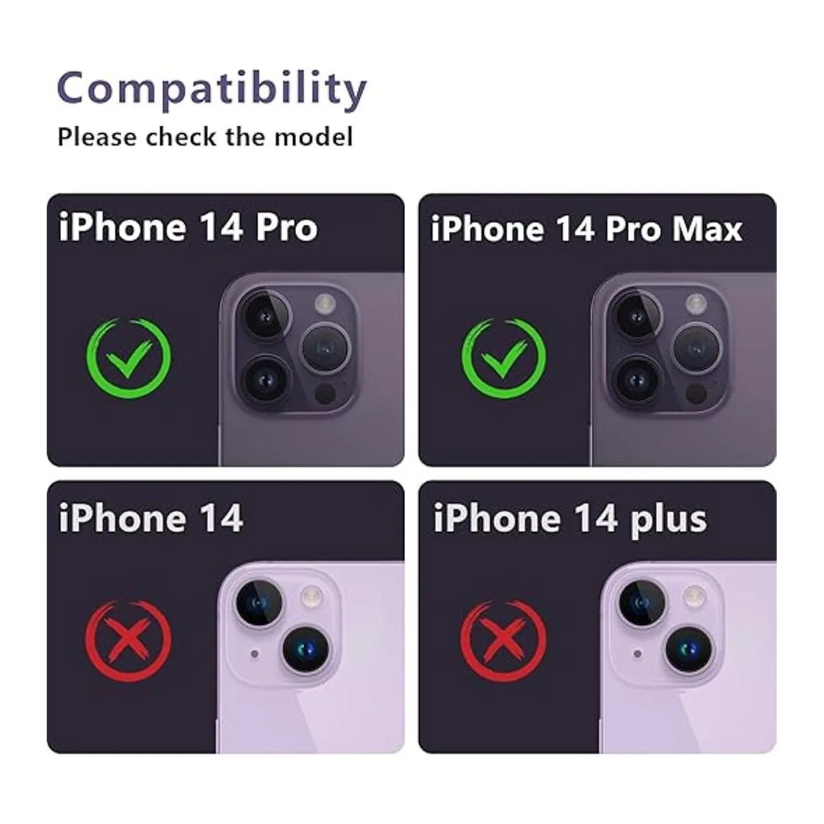 Consejo importante: película protectora para lente de cámara especialmente diseñada para iPhone 14 Pro y iPhone 14 Pro Max, incluyendo 2 películas protectoras de cámara trasera de vidrio templado de metal y 2 juegos de herramientas de limpieza. Asegúrate de que la lente esté seca antes de aplicar la película.