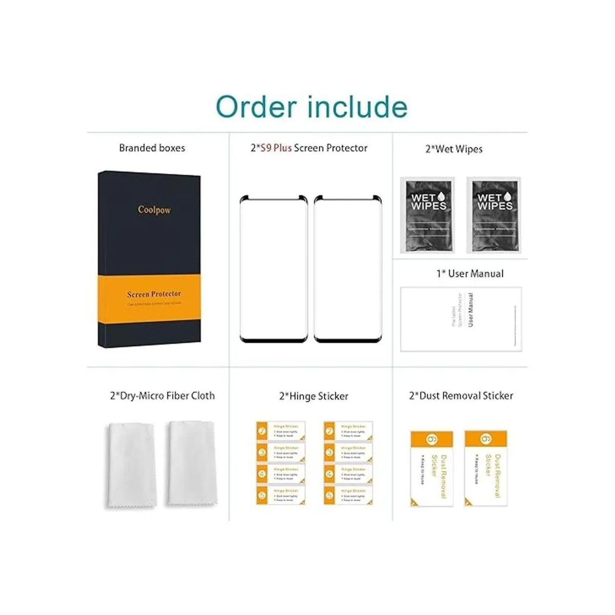 Paquete de 2 protectores de pantalla para Samsung Galaxy S9 Plus para Samsung S9 Plus compatible con fundas antiburbujas cobertura curva 3D dureza 9H ultra transparente protector de pantalla S9 Plus vidrio templado
