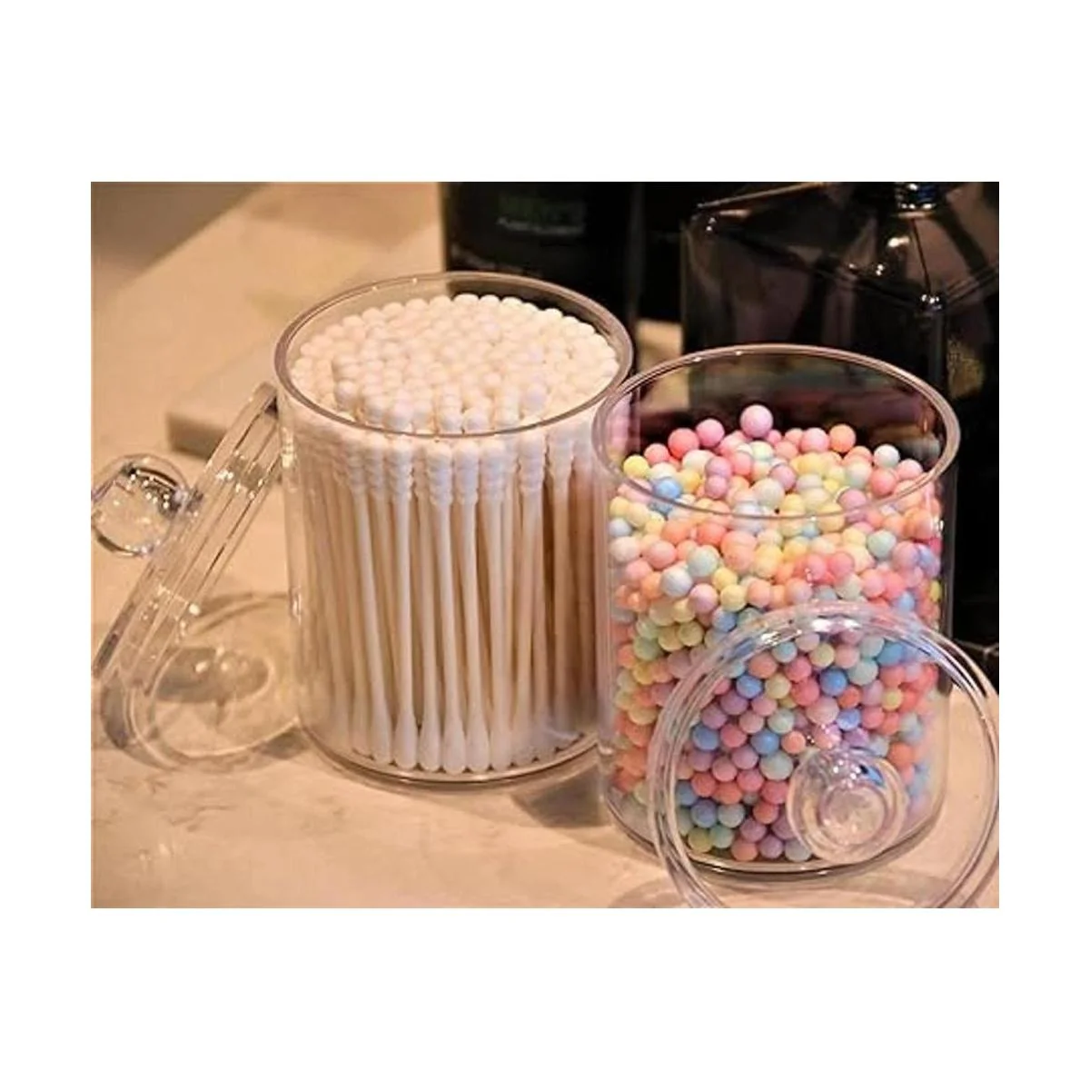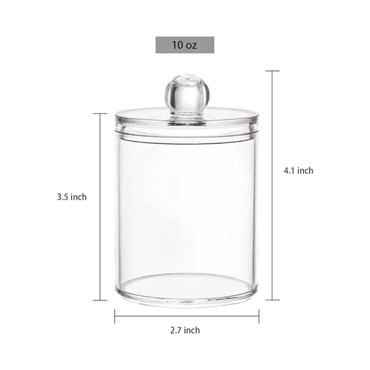 Paquete de 2 recipientes de almacenamiento Qtip para bola de algodón, hisopo de algodón, almohadillas redondas de algodón, hilo dental; tarro de boticario de plástico transparente de 10 onzas con tapa, organización de almacenamiento de recipiente de baño, organizador de maquillaje 2