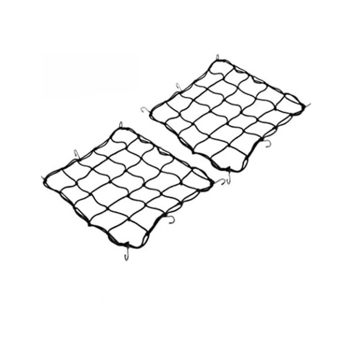 Paquete de 2 redes elásticas de carga de 15.7 x 15.7 pulgadas que se estiran hasta 30 x 30 pulgadas, malla elástica para equipaje de motocicleta con 12 ganchos de metal, cable elástico, red de carga para bicicleta, tabla de remo cuádruple, canoa, ciclomotor ATV