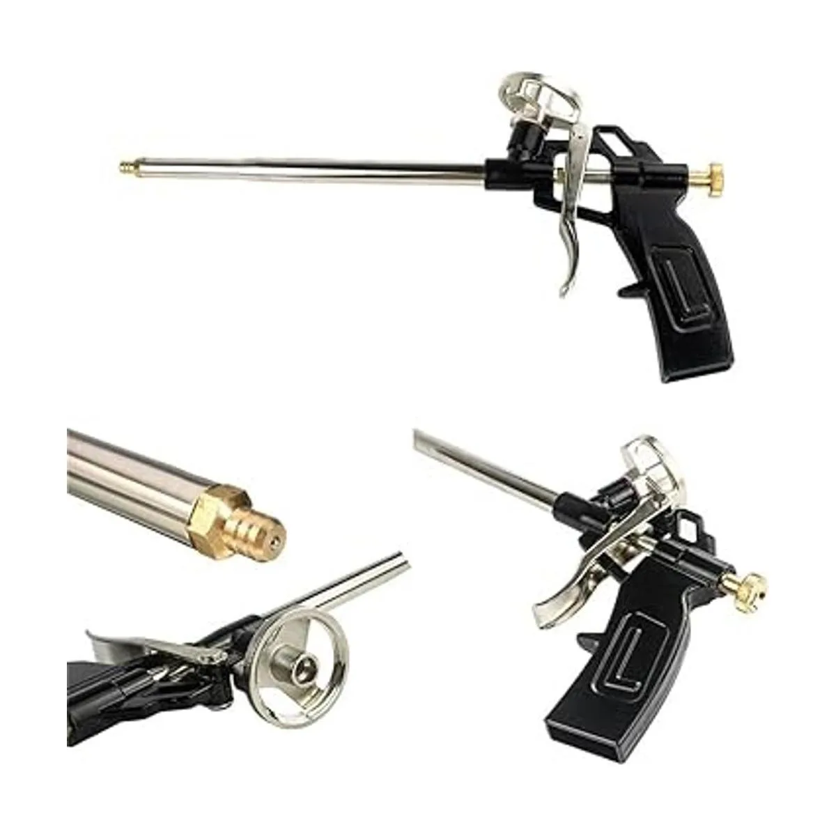 Paquete de 2 pistolas de espuma, pistola de espuma Picowe, pistola de calafateo expansible, cuerpo de metal, pistola de espuma de poliuretano resistente, aplicador de aplicación de pulverización expandible