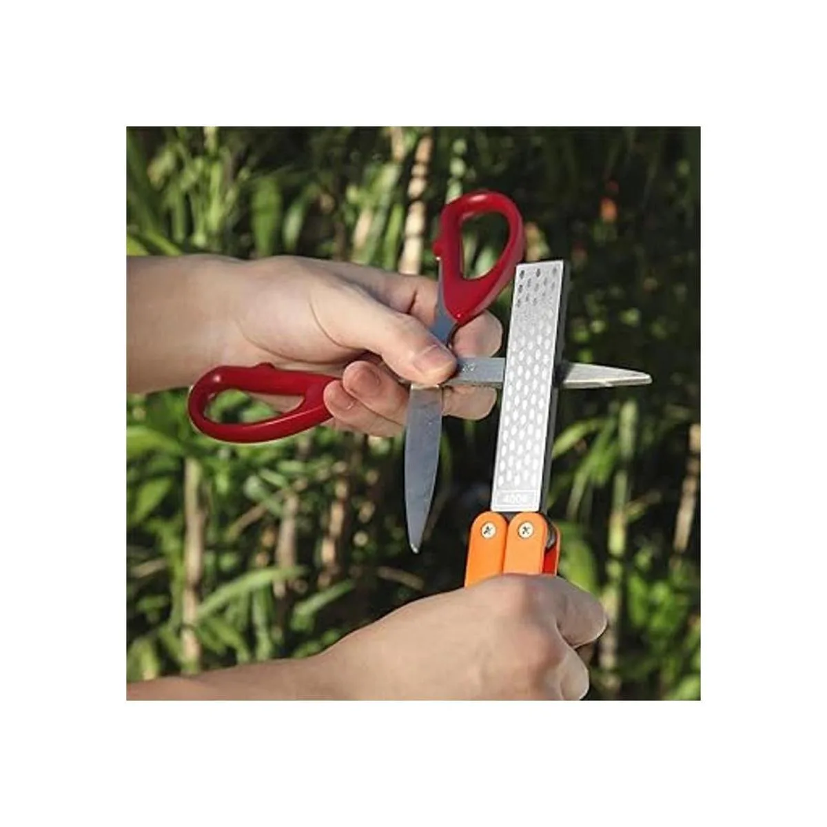 Paquete de 2 sacapuntas de herramientas de jardín, afilador de cuchillos de diamante de bolsillo plegable de grano 400600, tijeras de doble cara, podadoras, cortadoras o piedra de afilar cuchillas, para jardín, exterior, campamento, cocina