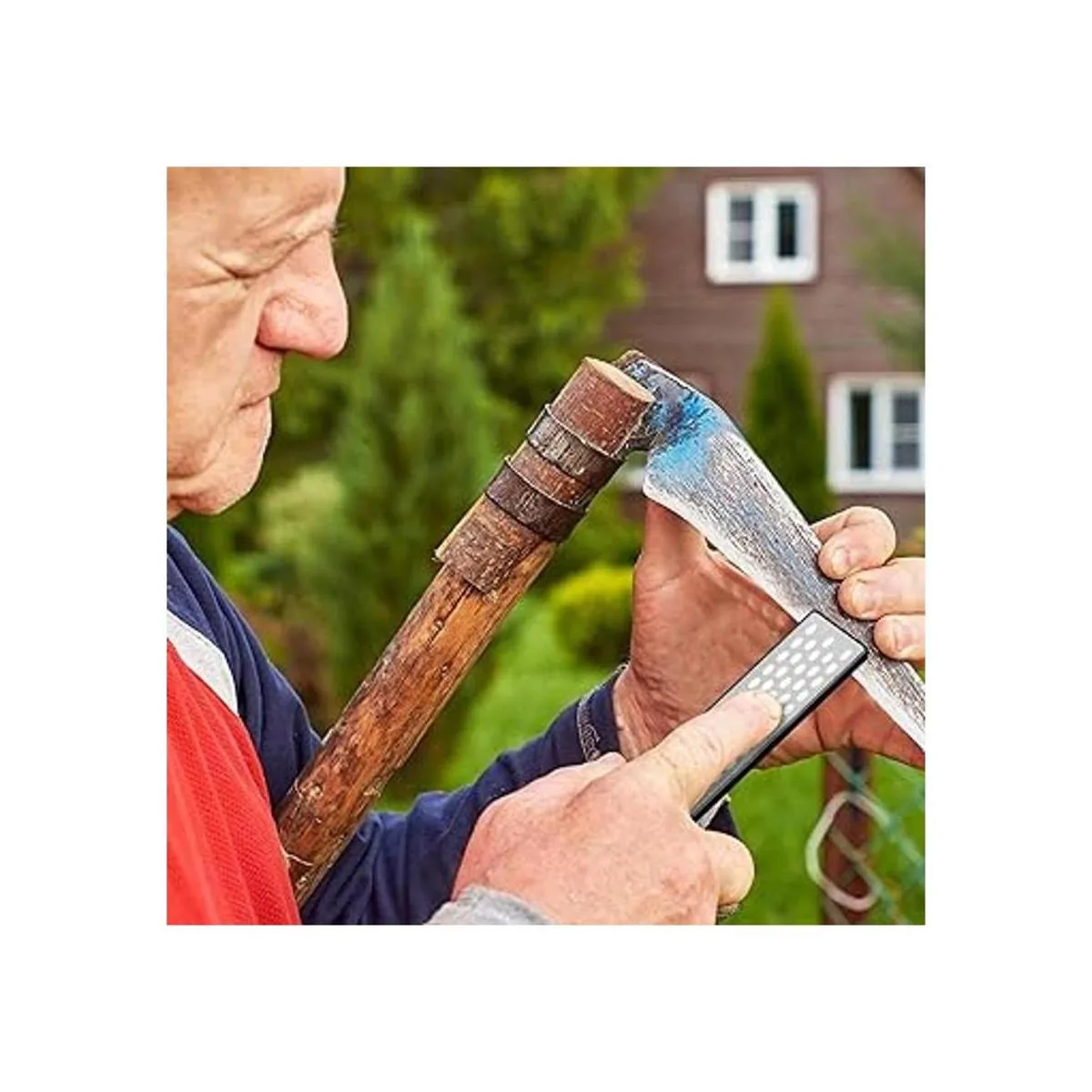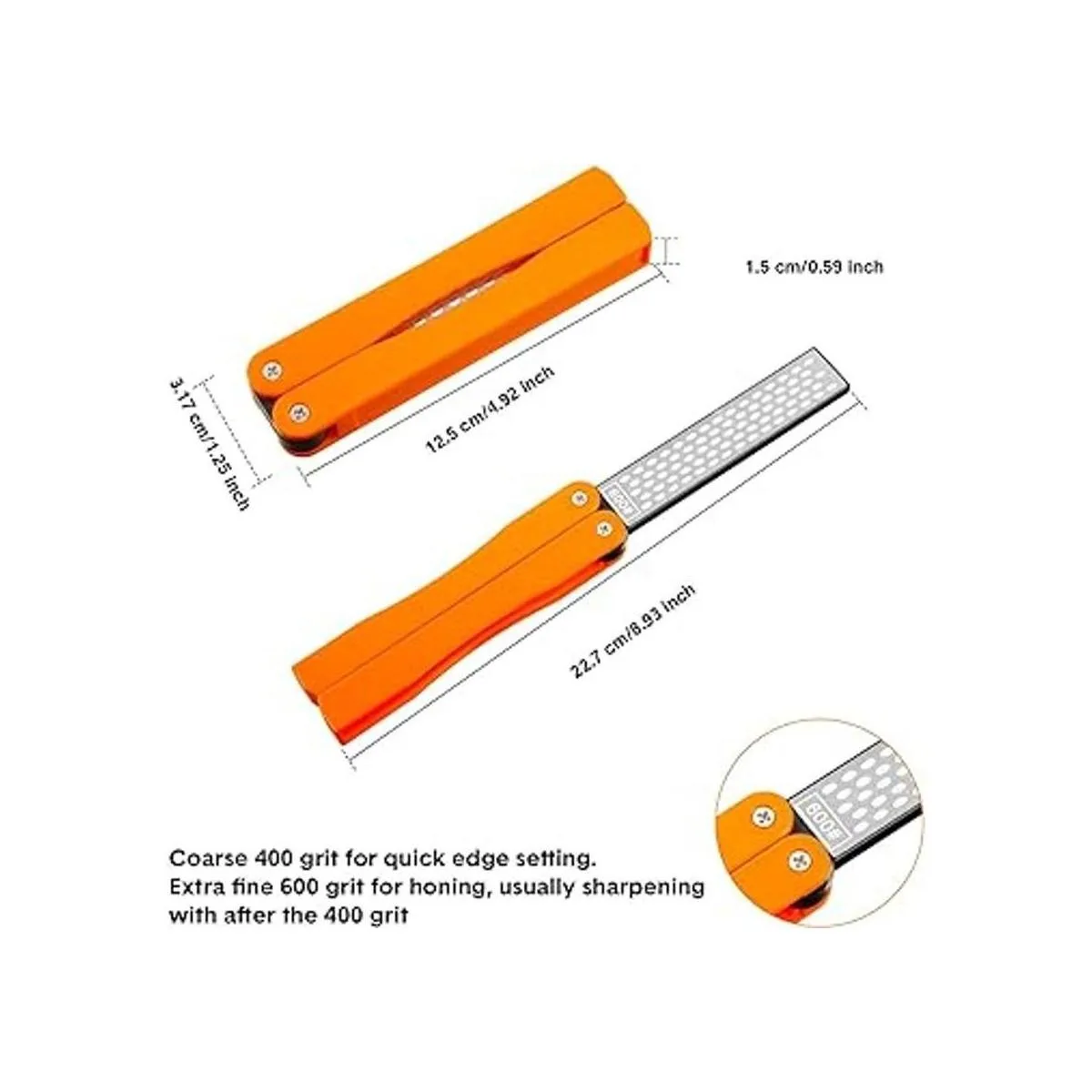 Diseño de diamante de doble cara: la piedra de afilado de diamante cuenta con un diseño de diamante de doble cara, grano grueso 400 para un ajuste rápido de bordes, grano 600 extra fino para afilar; no se necesita aceite, simplemente afila en seco o con agua