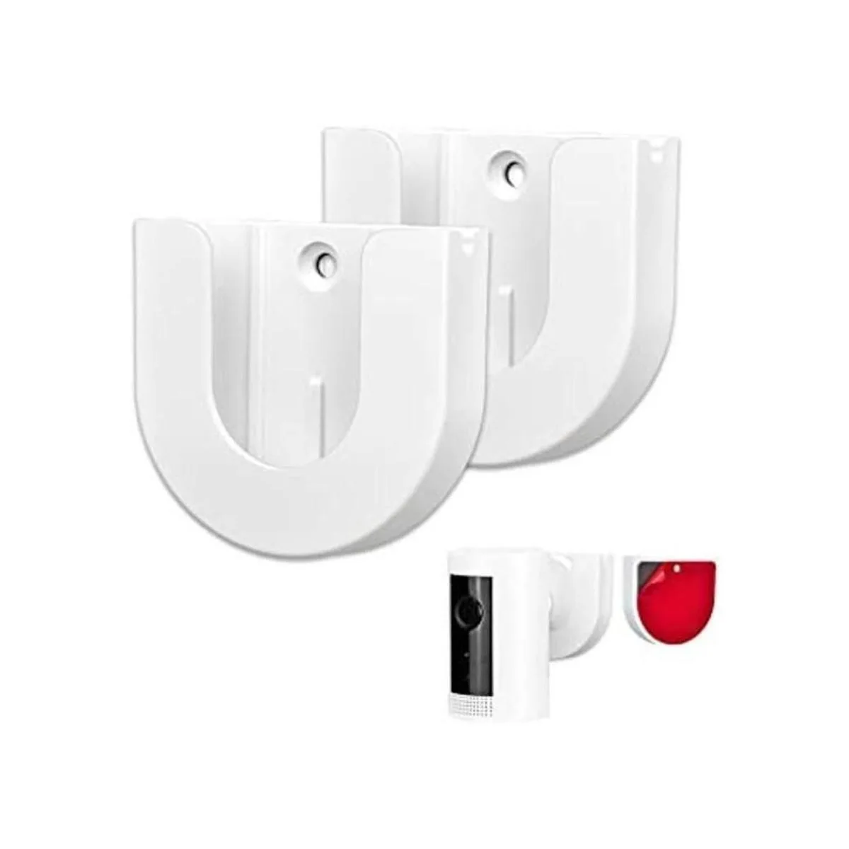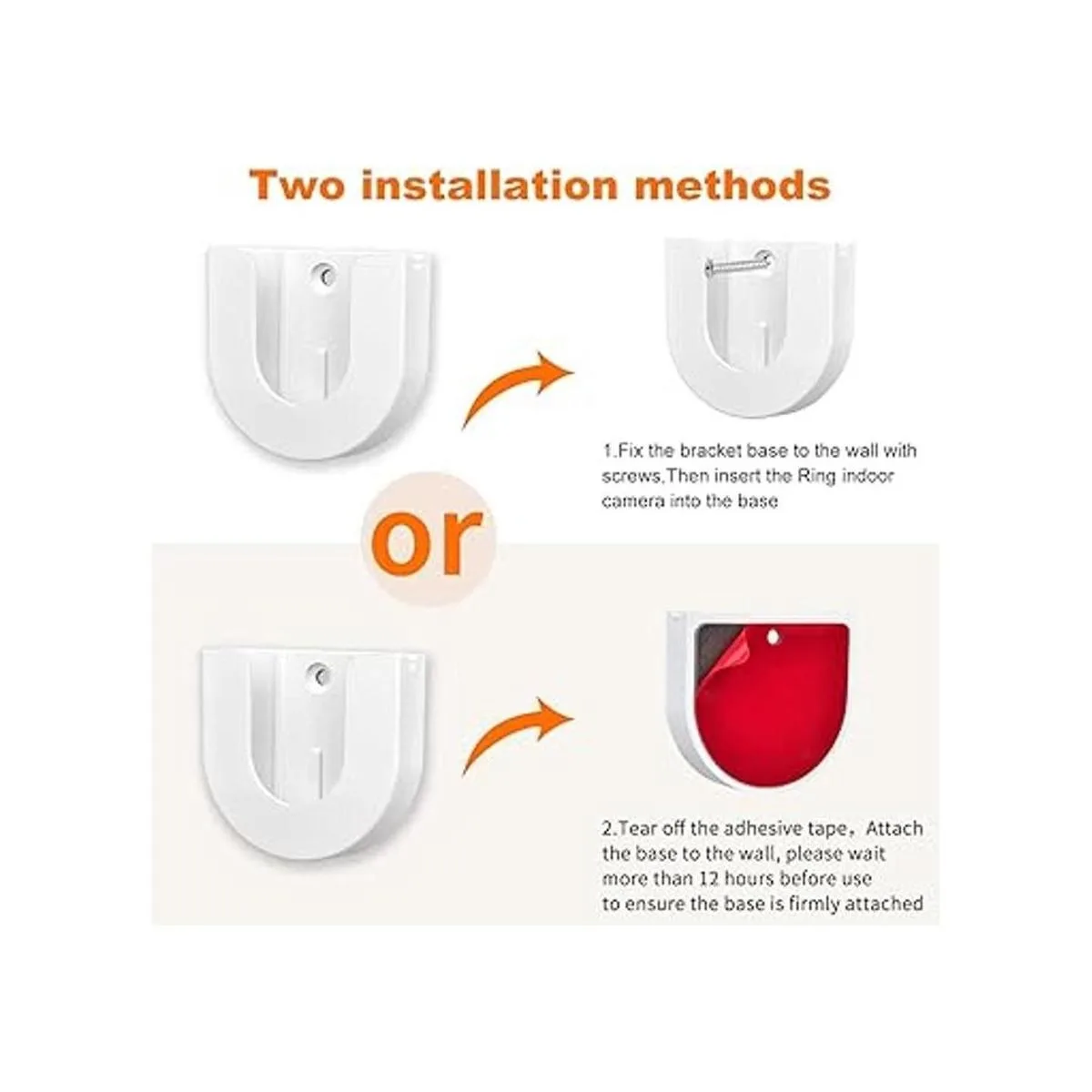 Paquete de 2 soportes de pared adhesivos fuertes para anillo de cámara de interior, dos maneras de fácil instalación, sin taladrar ni tornillos fijados anillo de cámara interior no incluida