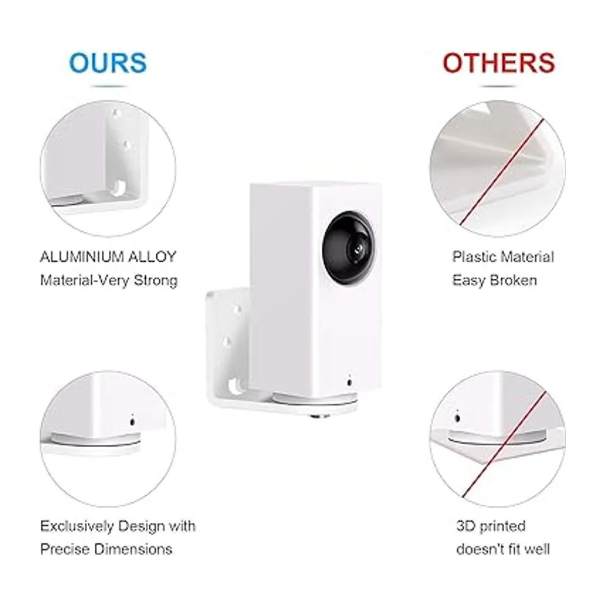 Diseño de agujero de tornillo inferior: viene con un tornillo para fijar en la parte inferior de la bandeja de leva Wyze, ofreciendo una sujeción estable y firme para tu cámara, sin afectar la capacidad de desplazarse o inclinar, agujero de cable diseñado a medida para que puedas insertar el cable a la cámara a través del agujero del soporte fácilmente, sin cables desordenados.