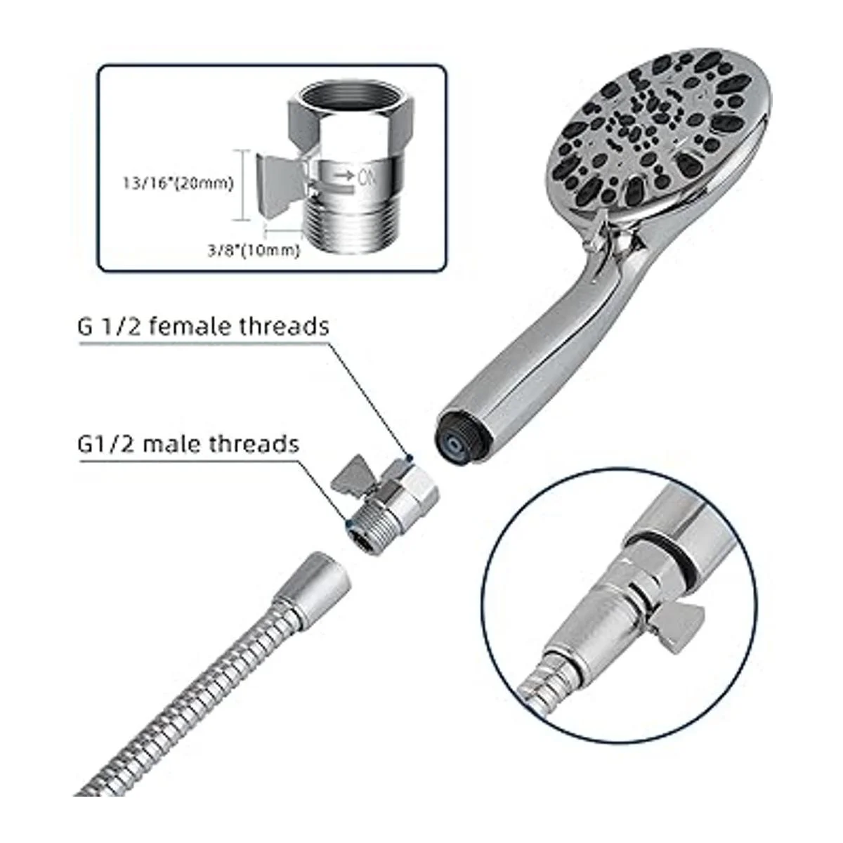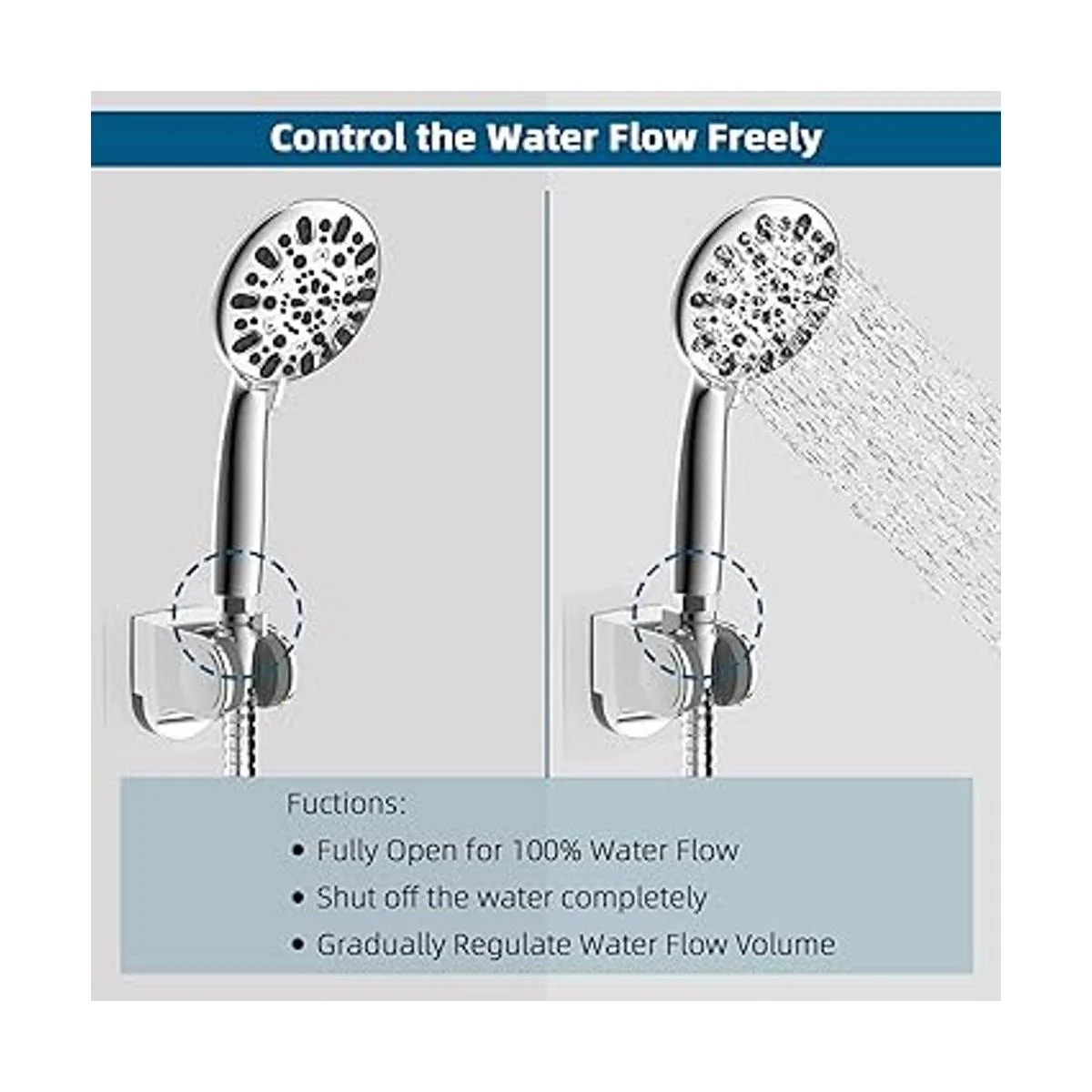 1. Fácil ajuste del flujo de agua: el limitador de flujo de cabezal de ducha Hibbent permite regular el volumen de agua o apagar completamente el flujo de agua mientras te duchas.