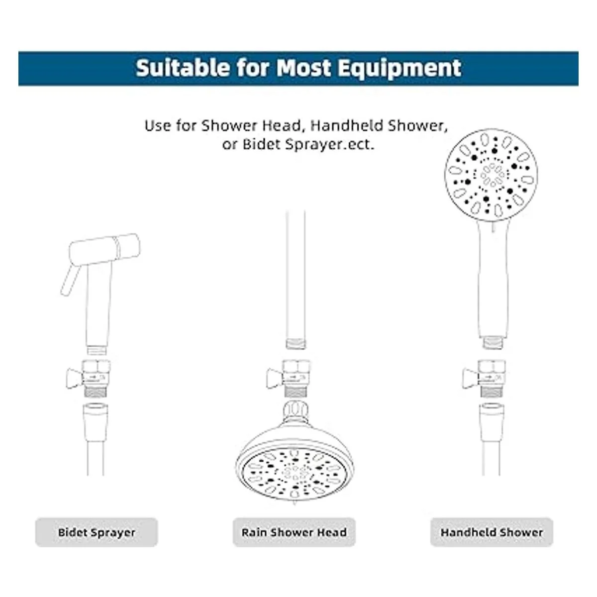 4. Conexión universal: entrada hembra IPS G1/2 pulgadas y 1 salida macho IPS G de 1/2 pulgadas, conexiones de rosca recta estándar que se adaptan a la mayoría de cabezales de ducha, brazos de ducha, mangueras y tuberías de agua.