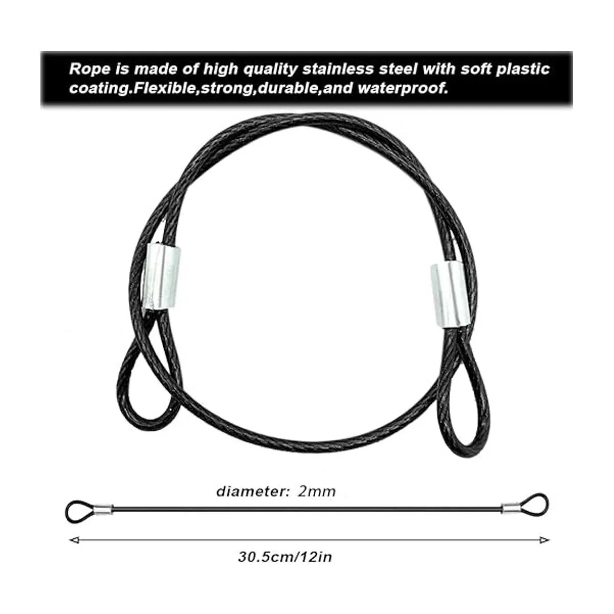 Material duradero: la correa de seguridad para cámara está hecha de acero inoxidable de alta calidad que tiene un revestimiento de plástico suave. Flexible, fuerte, duradero, impermeable y resistente a la sal. Diámetro de 0.079 in, fuerza de rotura de hasta 33.1 lbs.