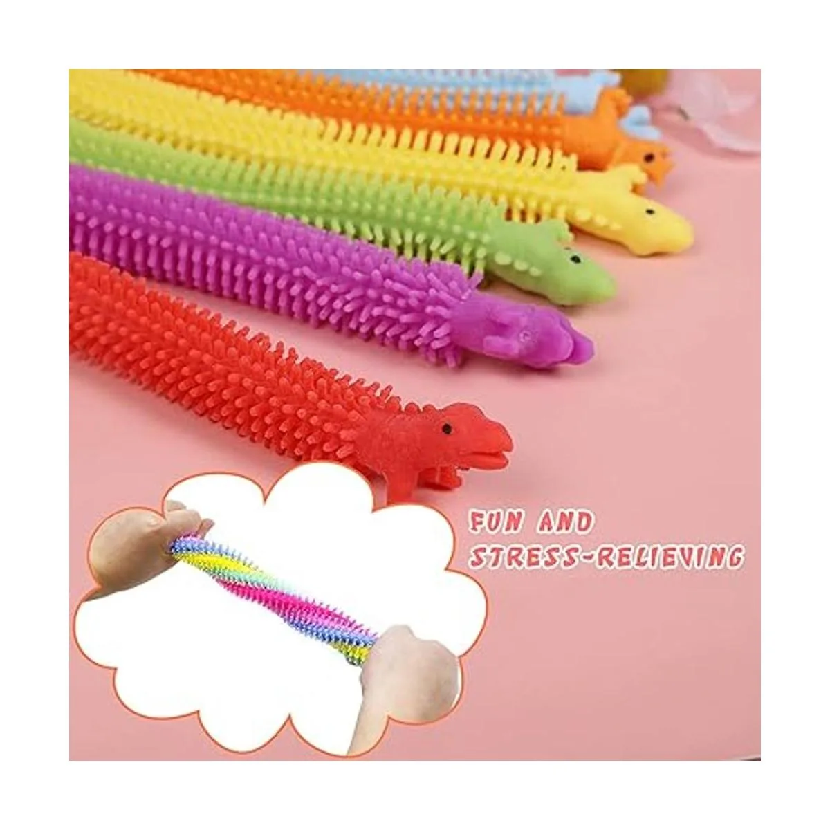 Divertido y alivia el estrés: el juguete de fideos tiene una bonita forma de dinosaurio y una textura de espina suave que estimula los sentidos cuando se toca y se estira, por lo que puedes relajarte, ayuda a aliviar la ansiedad. El juguete de cuerda elástica es ligero y compacto, por lo que se puede llevar en una bolsa o bolsillo, perfecto para pasar el tiempo cuando estás aburrido.