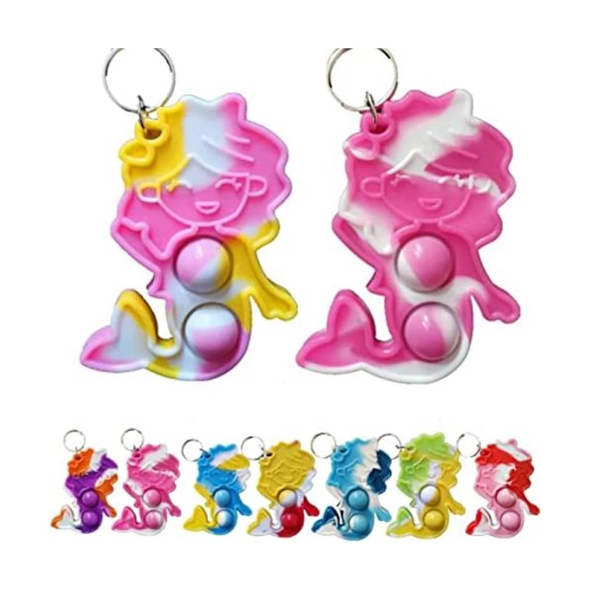 Paquete de 20 llaveros de mochila de sirena a granel, mini juguete para ansiedad para estudiantes, regalo y recuerdos de fiesta de sirena, premio de burbujas para estudiantes para niños y niñas pequeñas, niños