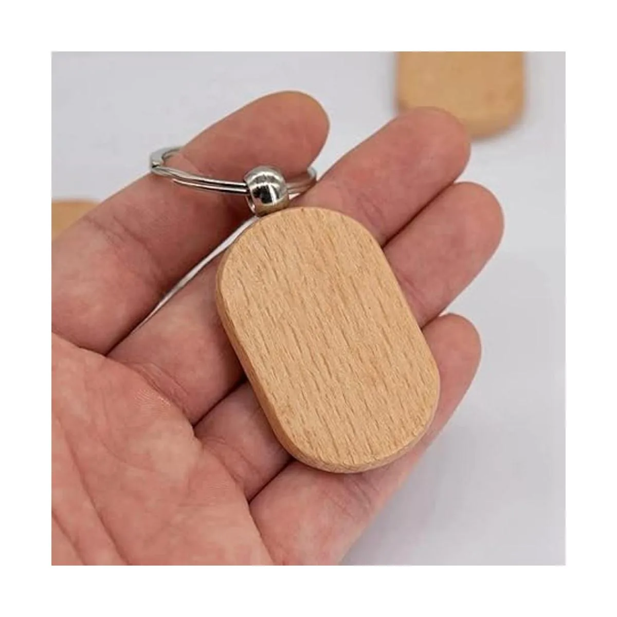 El paquete incluye: 20 llaveros de madera rectangulares redondeados.