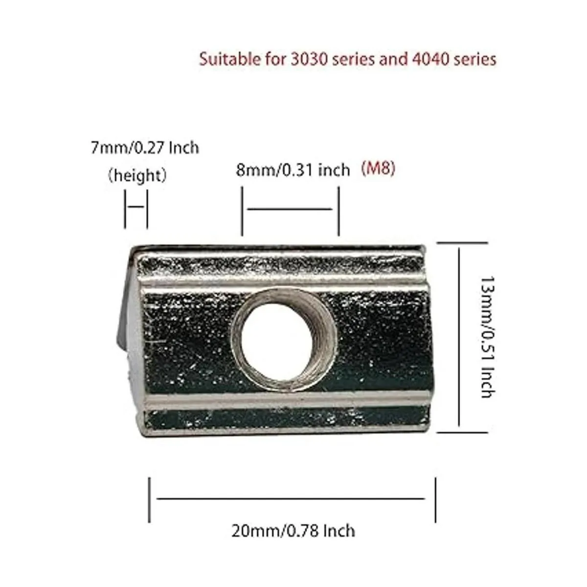 Contenido del paquete: 30 tuercas en T de 30/40 Universal Series M8 con resorte cargado.