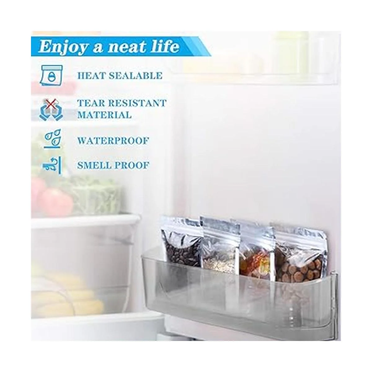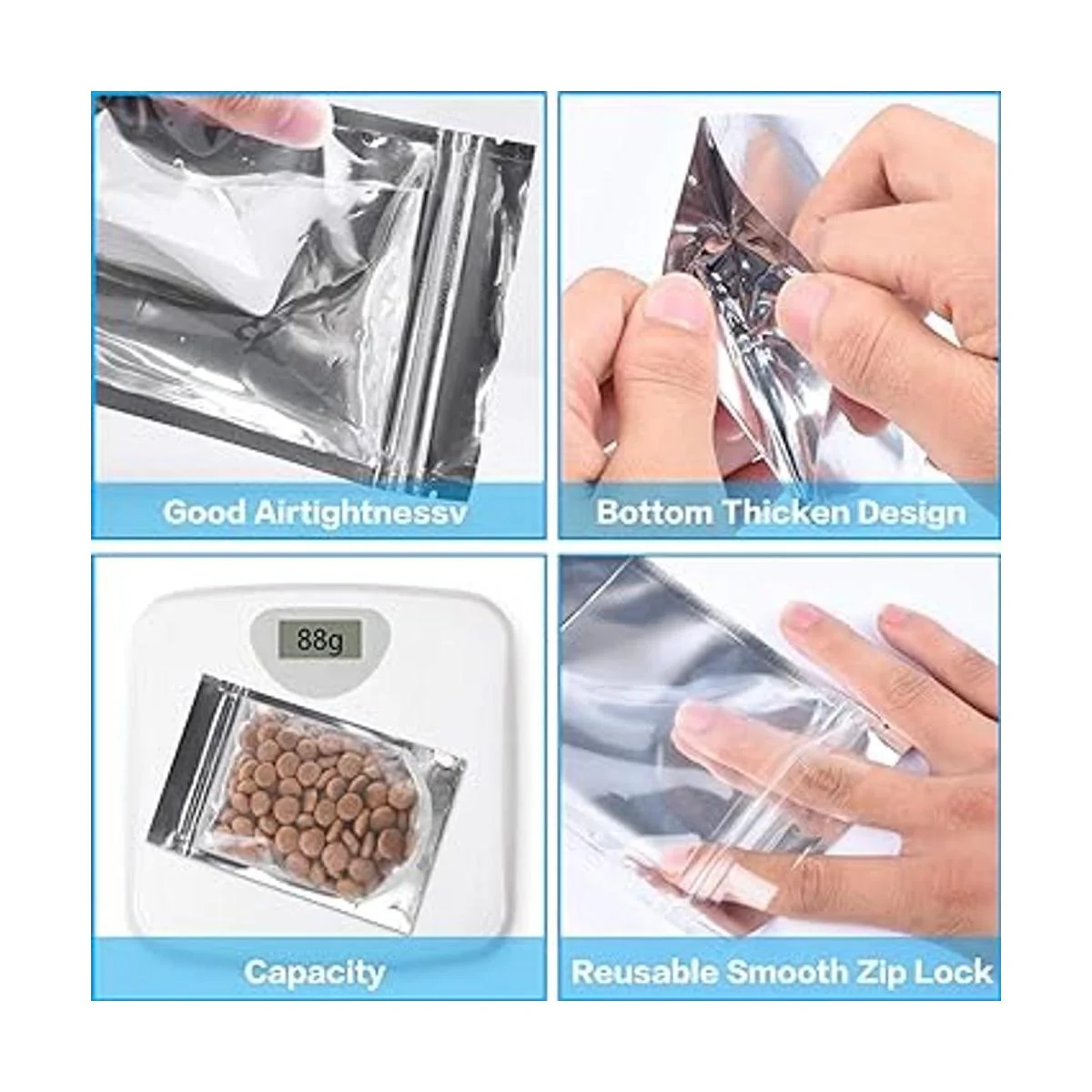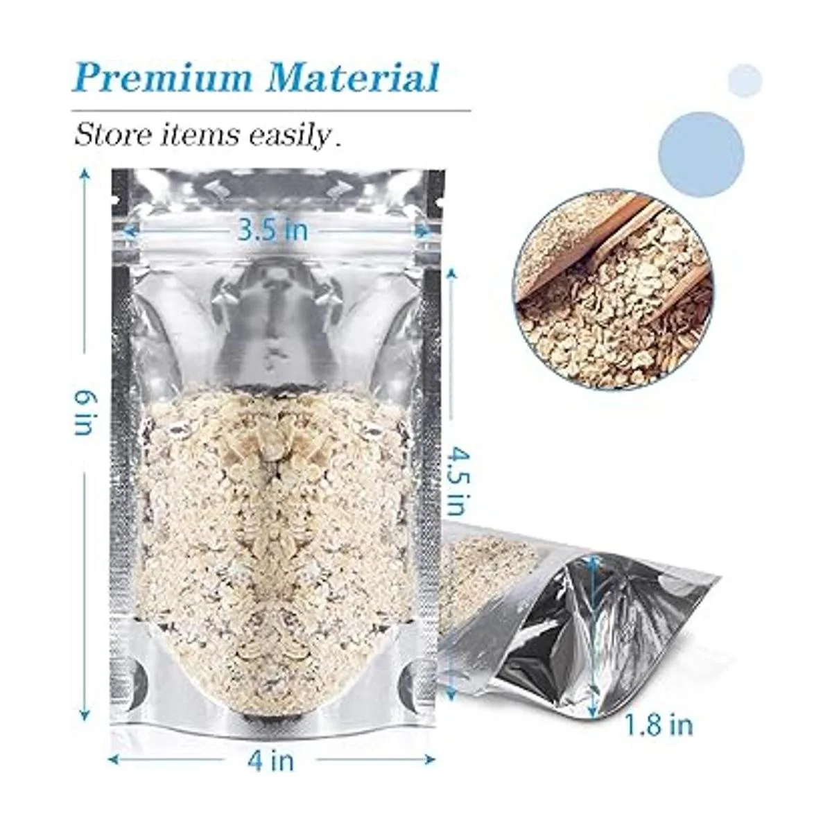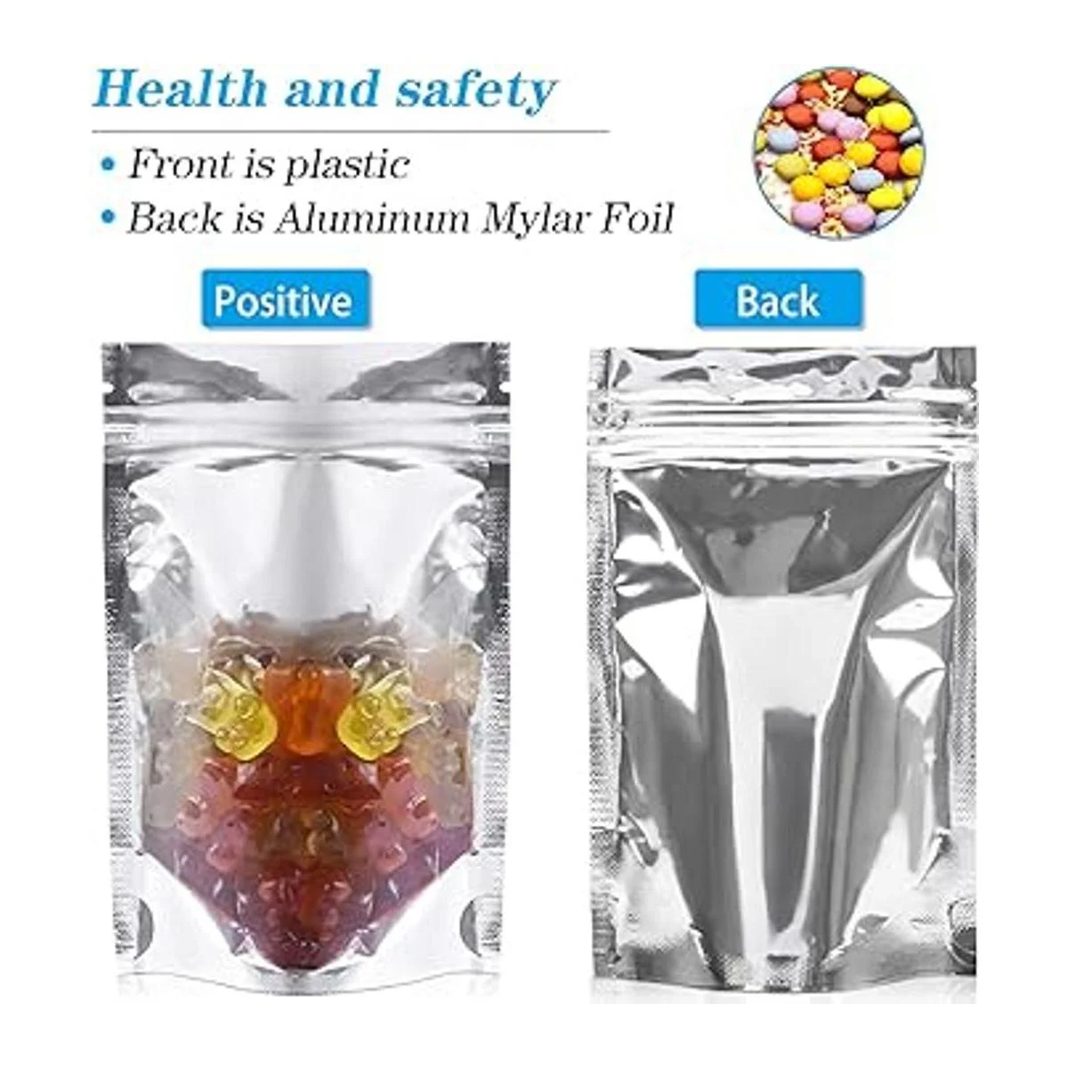 Paquete de 200 bolsas de Mylar con cierre de plata transparente de 4 x 6 pulgadas para almacenamiento de alimentos, embalaje de papel de aluminio, cremallera de plástico, almacenamiento de alimentos, café, caramelos, cierre de cremallera, bolsas a prueba de olores