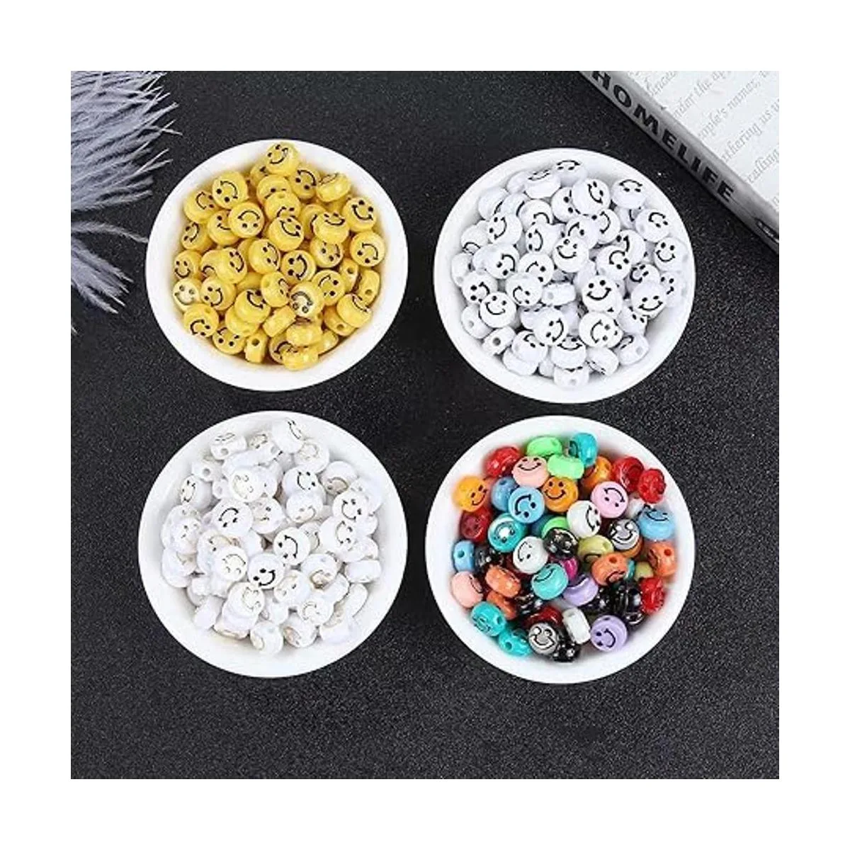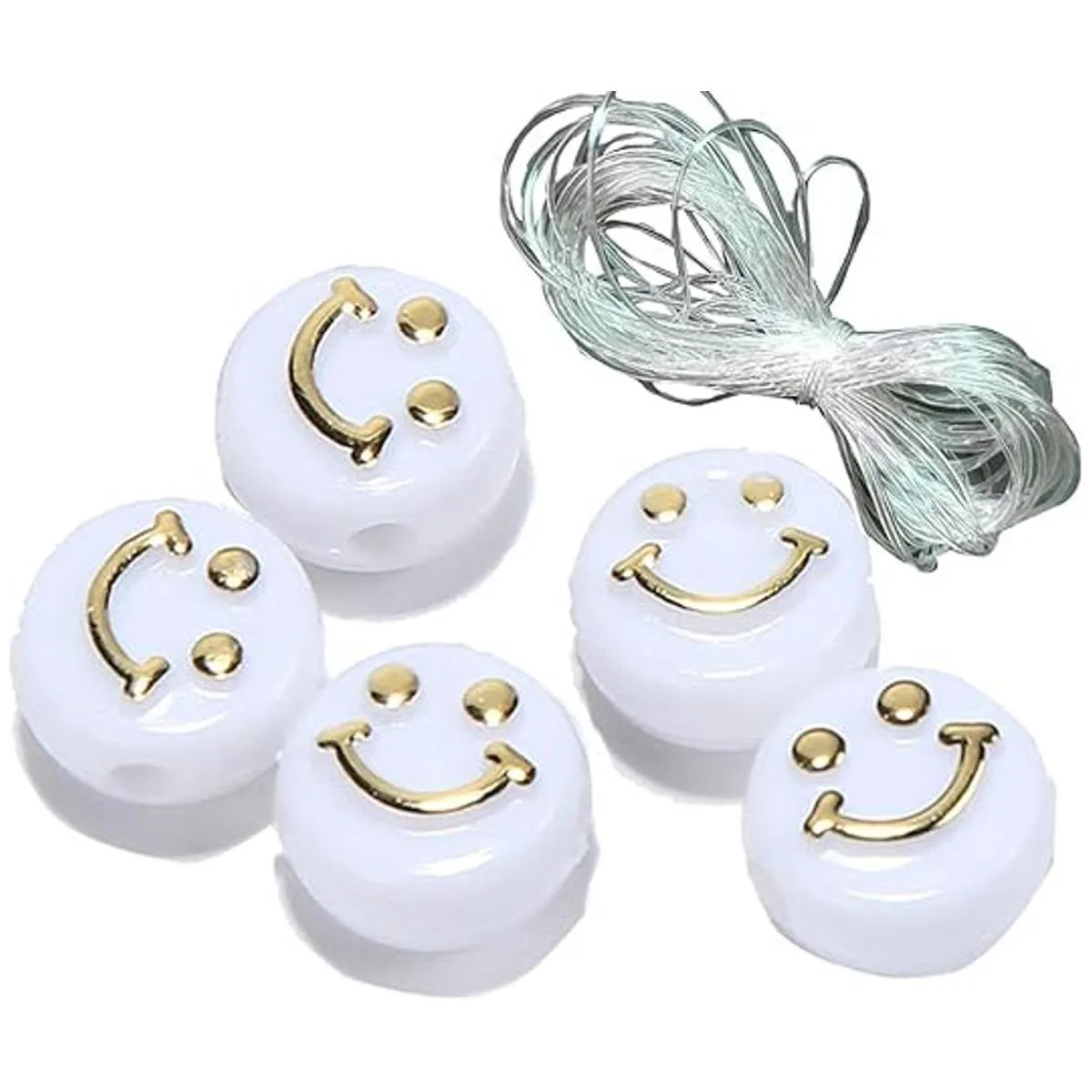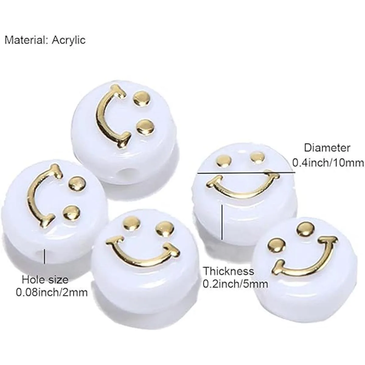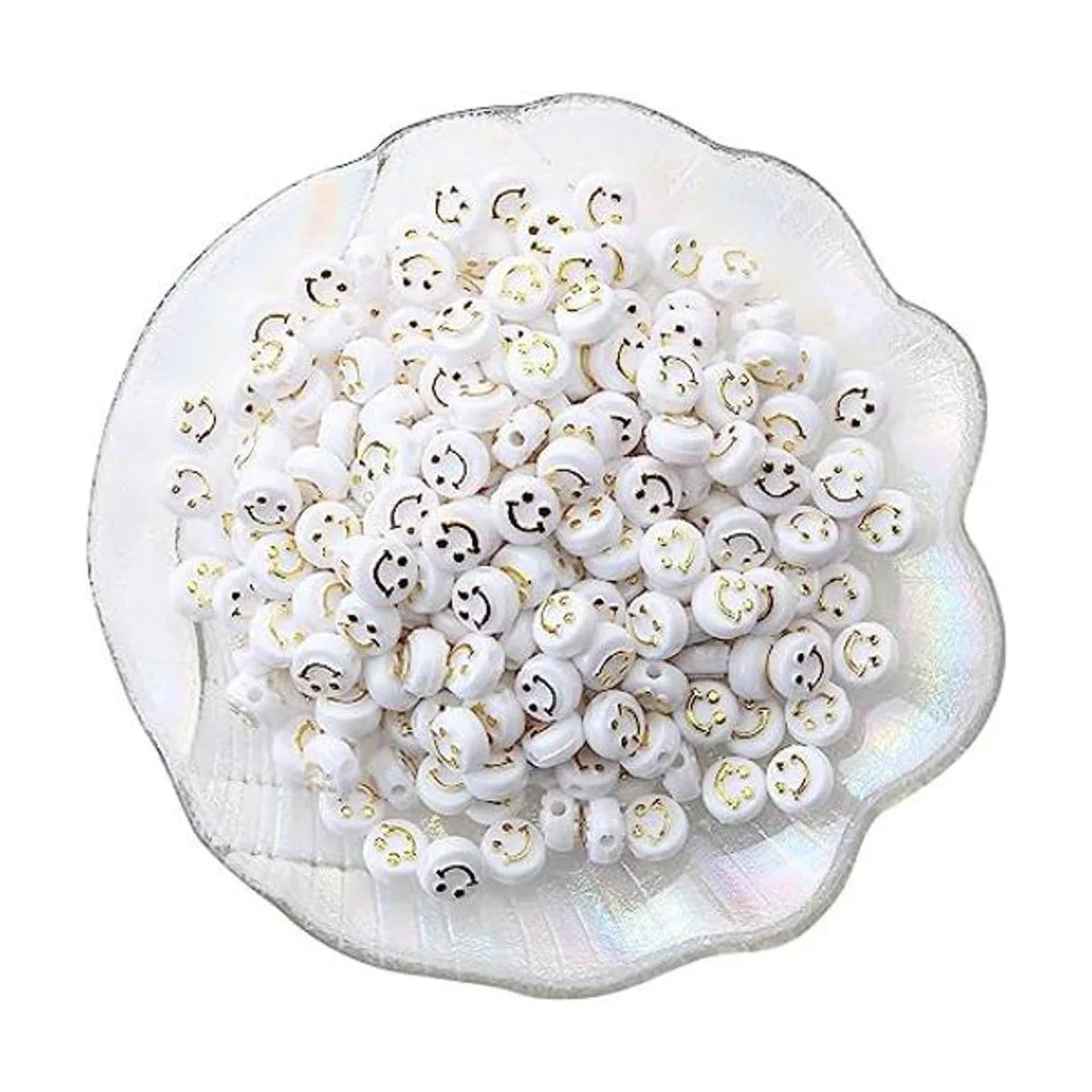 Paquete de 200 cuentas de cara sonriente de oro blanco de 0.394 in de cuentas espaciadoras de cara feliz de acrílico para bricolaje, joyería hecha a mano, pulsera, aretes, collar, suministros de fabricación de manualidades oro blanco