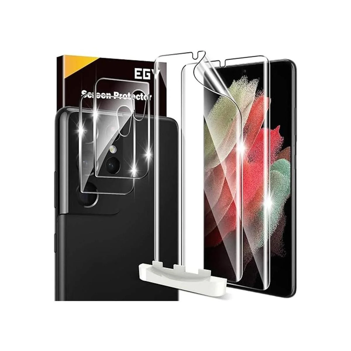 Paquete de 22 EGV compatible con Samsung Galaxy S21 Ultra 5G de 6.8 pulgadas, protector de pantalla flexible de TPU y protector de lente de cámara de vidrio templado compatible con lector de huellas dactilares Fácil instalación Modelo No.ZZU