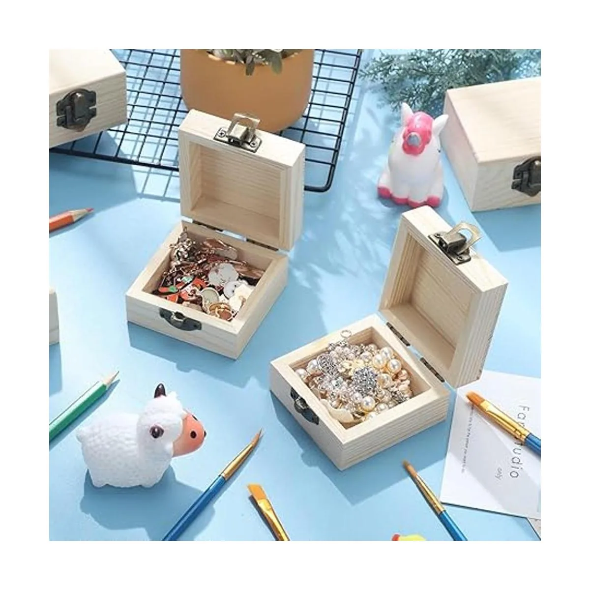 Paquete de 24 cajas de madera pequeña de 2.7 x 2.7 x 1.6 pulgadas, cajas de madera de pino natural sin acabar, mini caja de joyería de madera sin pintar, caja de almacenamiento de madera con tapas con bisagras para manualidades de bricolaje