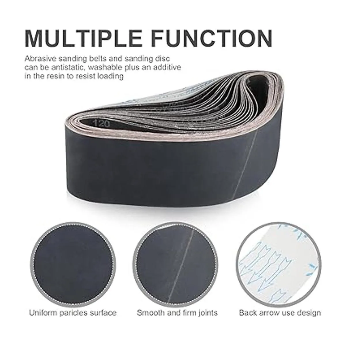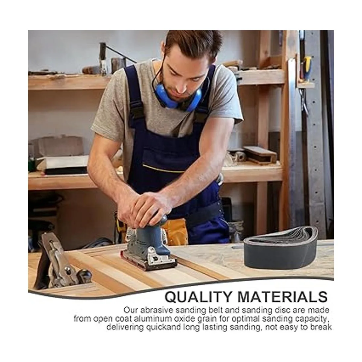 Material de calidad: nuestro cinturón de lijado abrasivo está hecho de capa cerrada de grano de óxido de aluminio de capa abierta, respaldo de tela de poliéster, para una capacidad de lijado óptima, ofreciendo un lijado rápido y duradero, no se rompe ni deforma fácilmente, puede servirte durante mucho tiempo