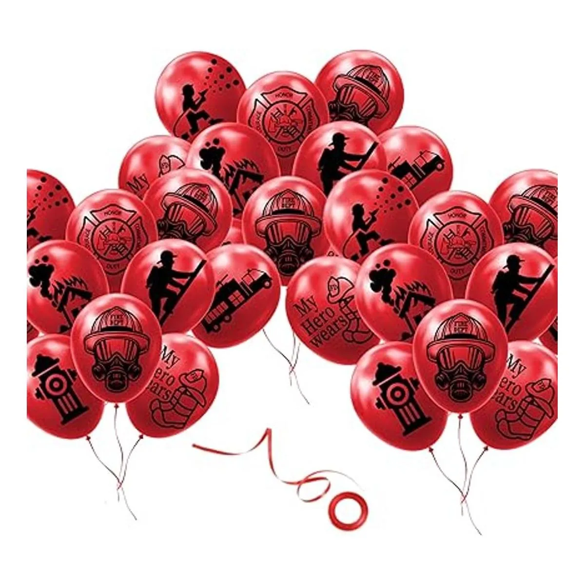 Paquete de 24 globos de látex con temática de bomberos de 12 pulgadas para bomberos y camiones de bomberos, globos de fiesta de policía para niños y adultos, suministros de fiesta de cumpleaños y baby shower