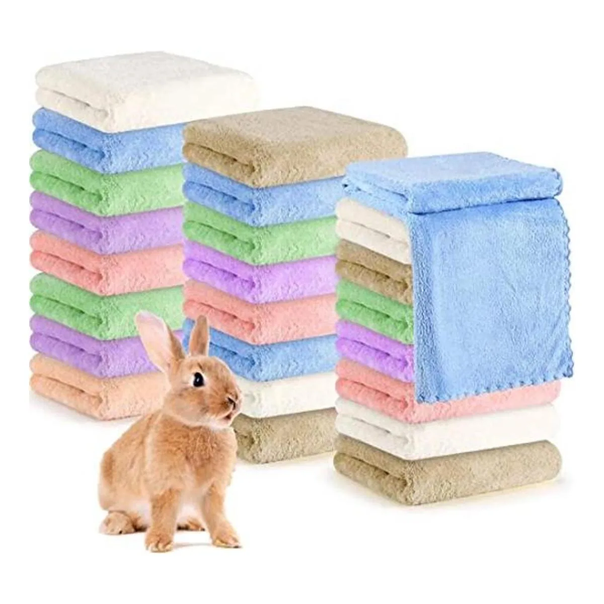 Paquete de 24 mantas de conejillo de indias de microfibra para mascotas, forro polar absorbente de conejillo de indias suave, accesorios de ropa de cama de animales pequeños, toallas de baño para cachorros y gatos