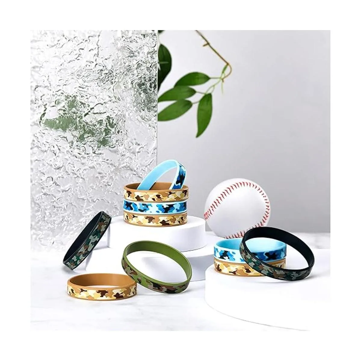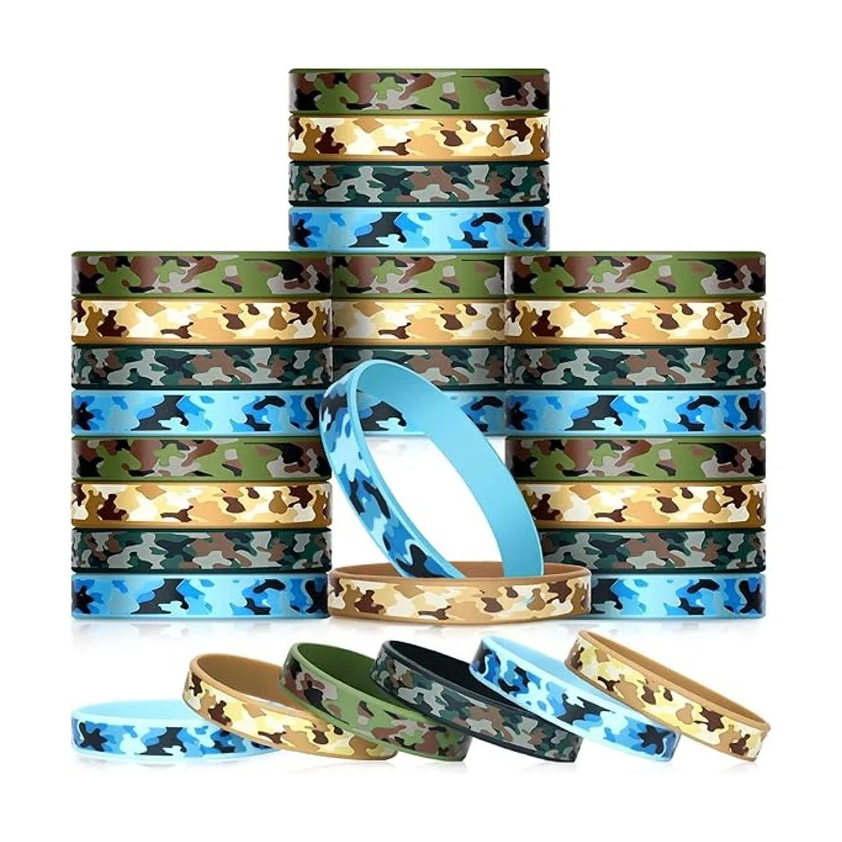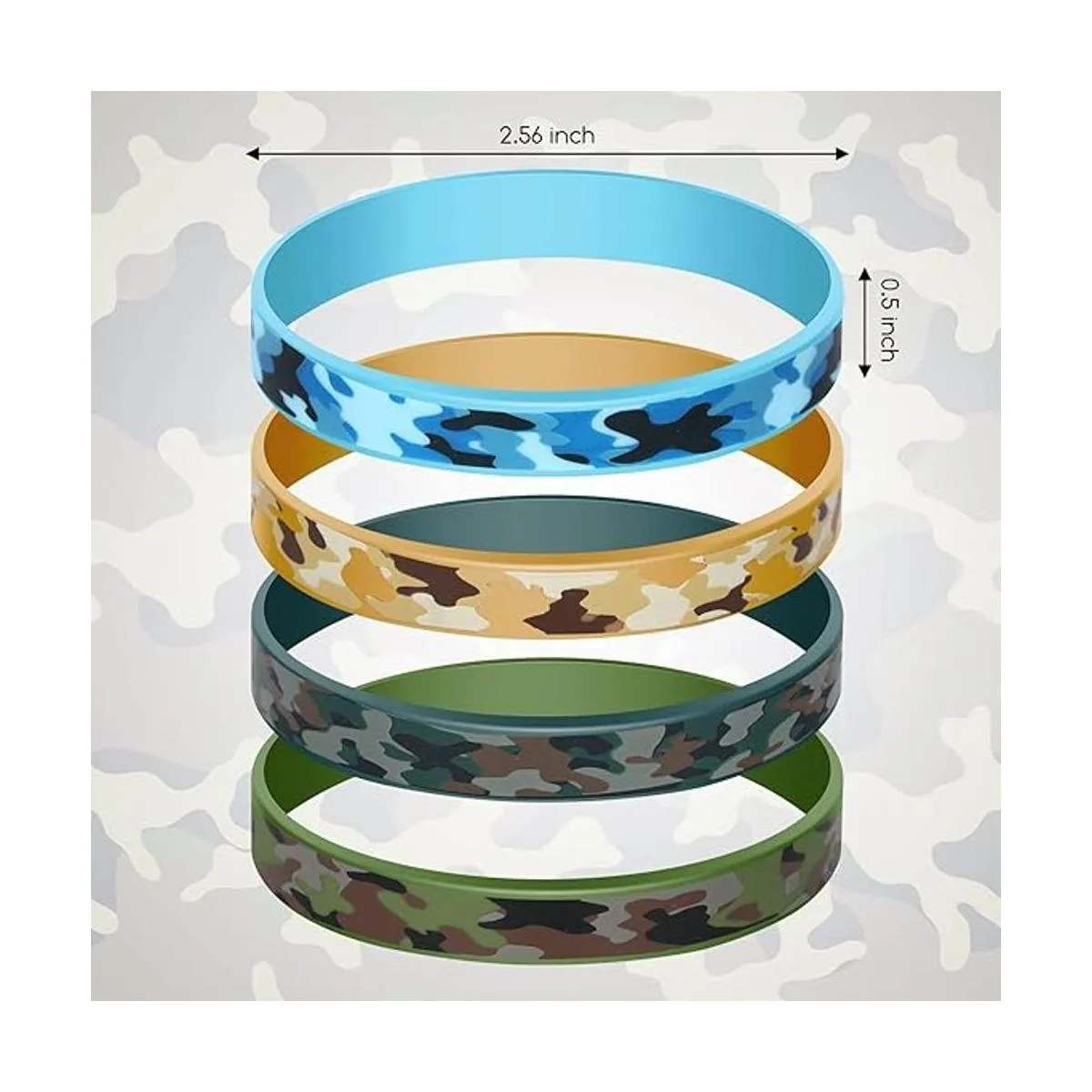 Paquete de 24 pulseras de goma de camuflaje del ejército de camuflaje, pulseras de goma militares de camuflaje verde para hombres, niños, mujeres, decoraciones de fiesta del ejército, suministros de fiesta de cumpleaños de camuflaje, gata