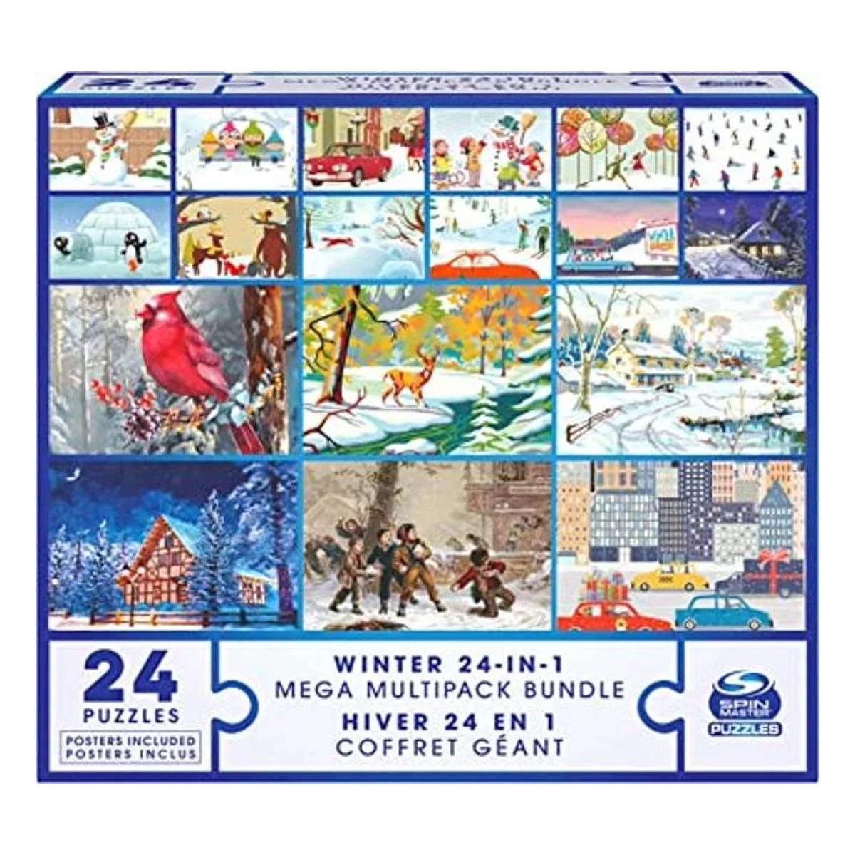 Paquete de 24 rompecabezas, paisaje de ilustración de nieve de invierno, 1000, 500, 300, 100, 48, 24 piezas, para niños y adultos a partir de 8 años