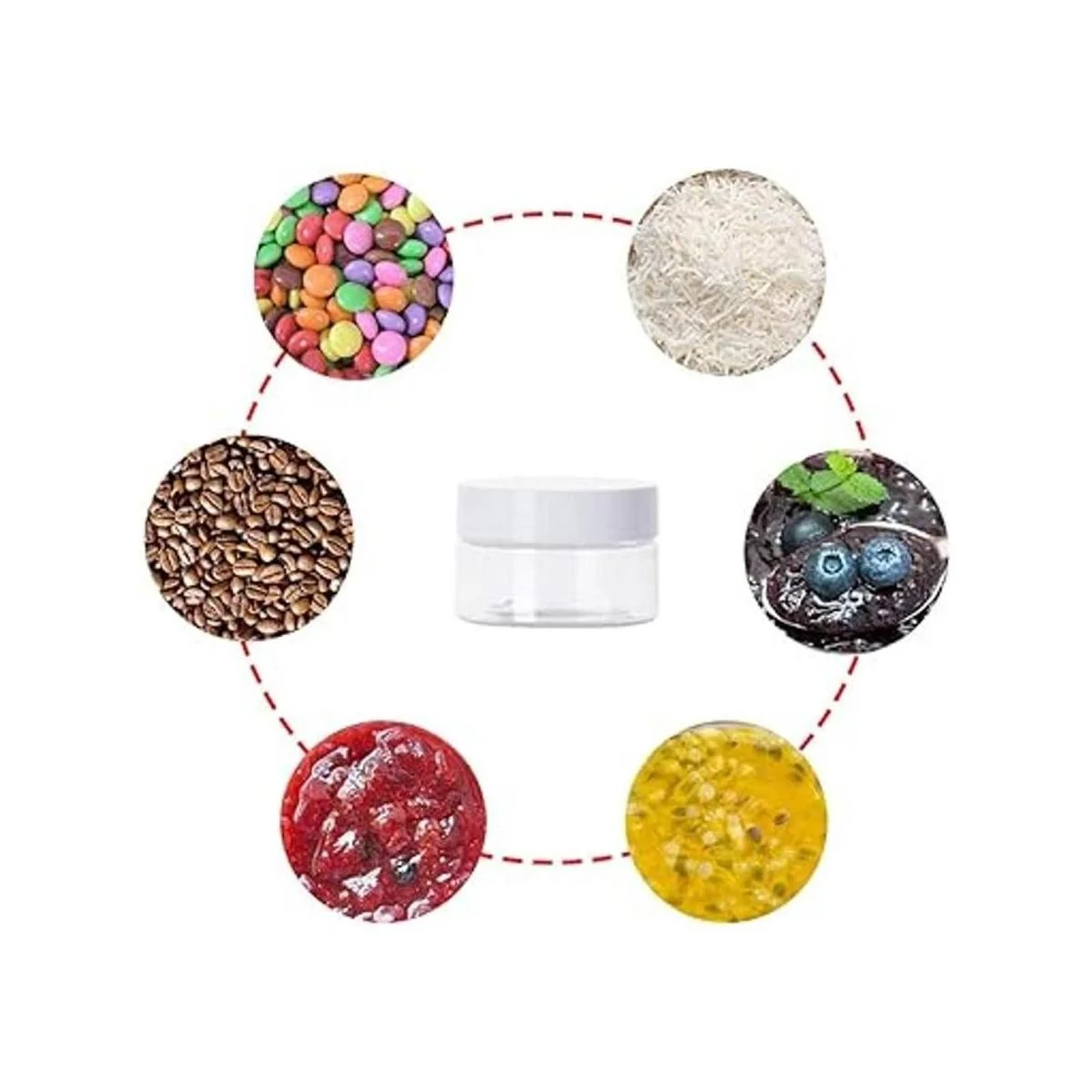 Material: tarros redondos transparentes con acrílico de alta calidad, resistentes a roturas y deformaciones, sin BPA.